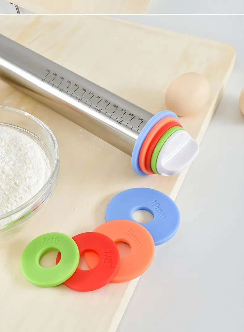 Adjustable Thickness: The rolling pin comes with adjustable rings that allow you to customize the thickness of your dough,