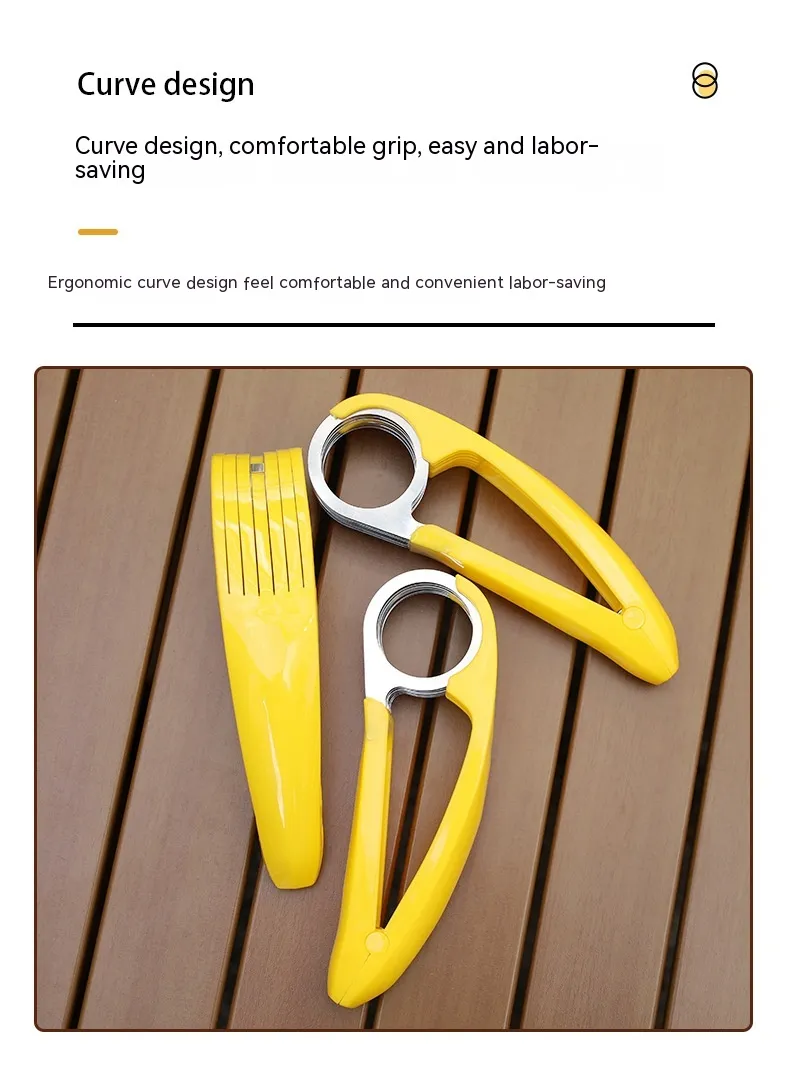 The Stainless Steel Banana Slicer is a compact, ergonomic slicing device engineered to cut bananas into uniform pieces with minimal effort. Instead of relying on a knife — which can lead to inconsistent slices or accidental slips — this tool allows you to achieve clean, even cuts in a single motion.