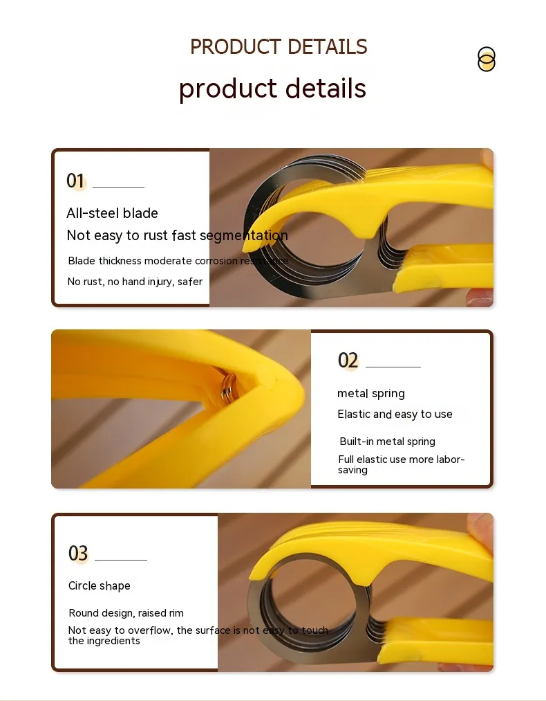 The Stainless Steel Banana Slicer stands out for its blend of durability, ease of use, and consistent performance. Unlike plastic counterparts that may warp or stain, stainless steel remains robust and hygienic through repeated use.