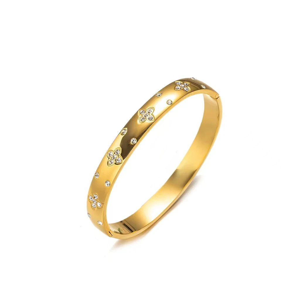 Stainless Steel Bangles Bracelet for Women – Fashion Jewelry with Zirconia Flower Design