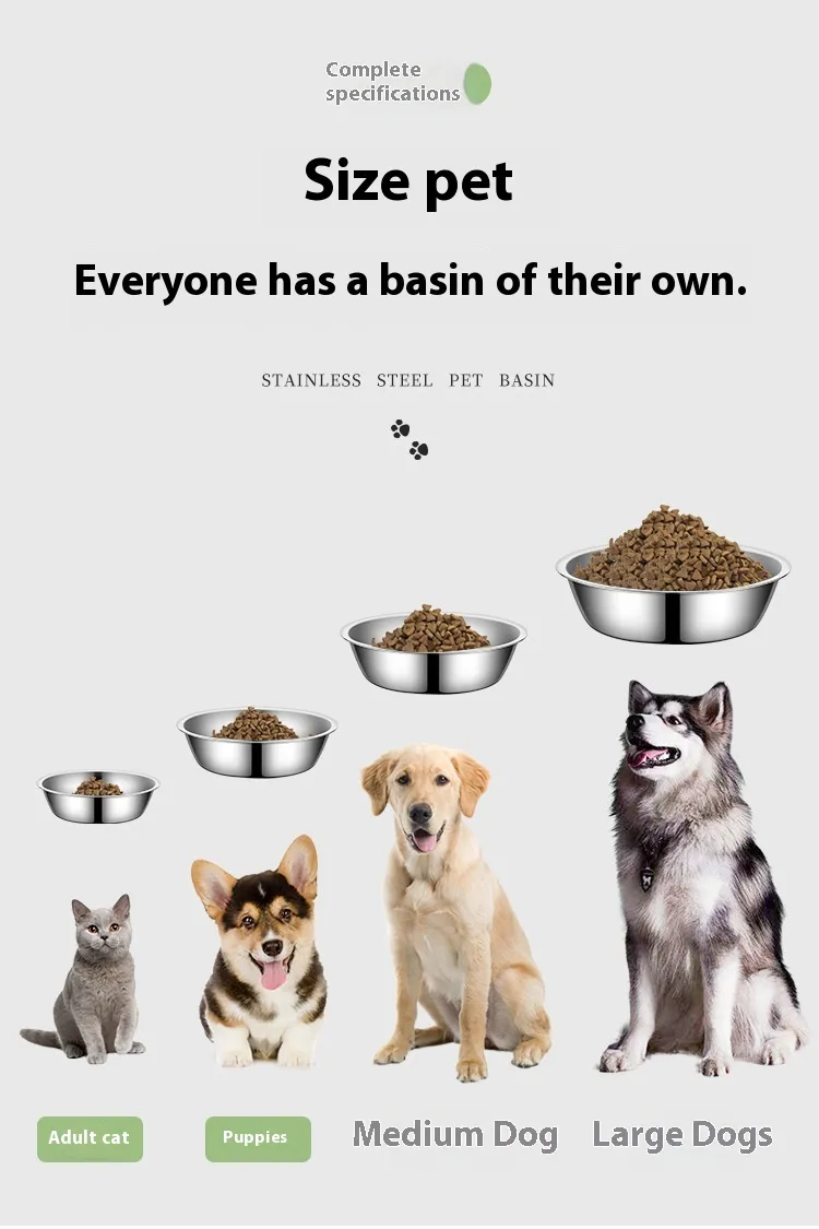 Available in various sizes, the Stainless Steel Bowl for Pet is suitable for all pets, from small kittens to large dogs, offering the perfect fit for every pet's feeding needs.