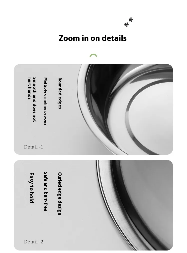 The Stainless Steel Bowl for Pet is the ideal choice for pet owners who want a durable, hygienic, and easy-to-maintain bowl for their furry friends. Its high-quality stainless steel construction ensures that it will last through daily use, while the non-tip design keeps your pet’s food and water contained. The easy-to-clean surface and non-porous material make it a hygienic choice that keeps your pet’s eating area fresh and safe. Whether you're feeding dry food, wet food, or water, this bowl offers both reliability and convenience.