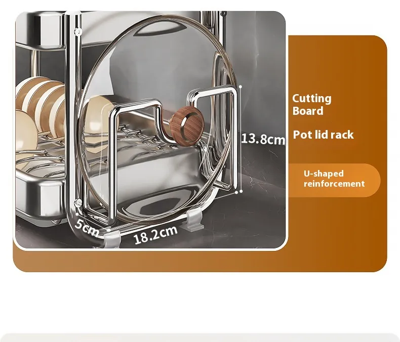 Style A: curved moon table [stainless steel] three-layer | 42cm main frame chopstick canister chopping board rack