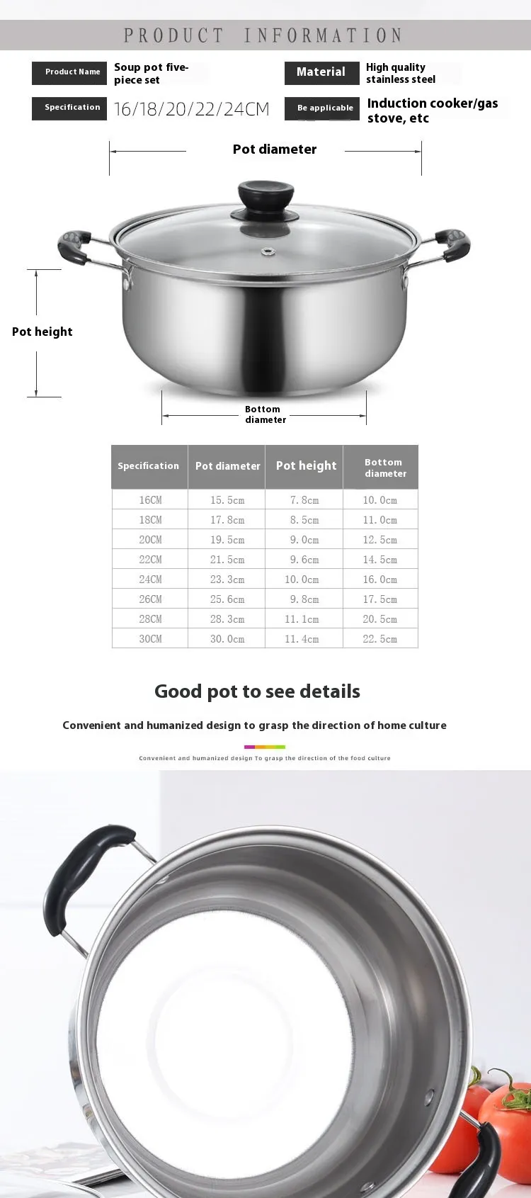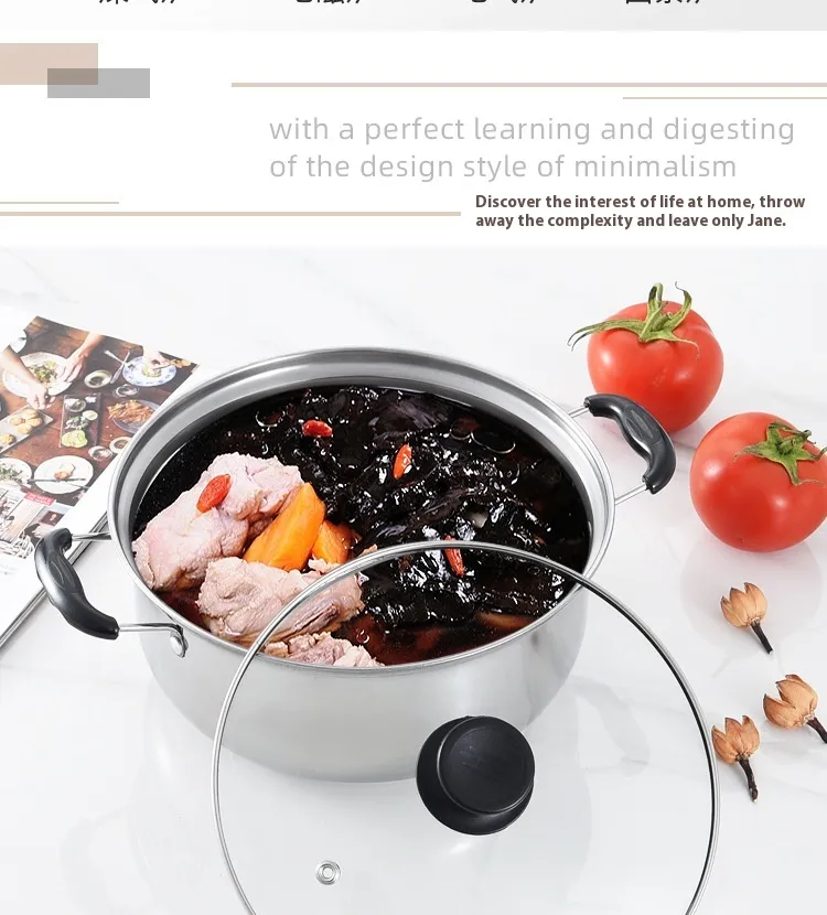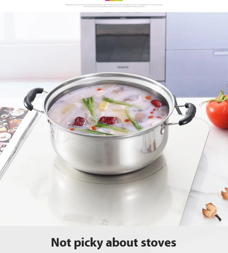 The Stainless Steel Dual-sided Stockpot is a reliable and essential cookware item. It delivers strength, convenience, and consistent results for large meal preparation.