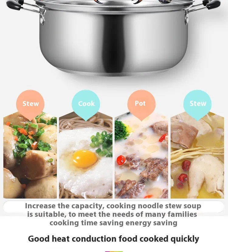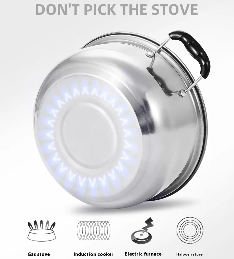 The Stainless Steel Dual-sided Stockpot is made from high-quality stainless steel, ensuring strength, durability, and resistance to rust. Its large capacity makes it perfect for cooking soups, stews, pasta, and boiling ingredients for family-sized meals.
