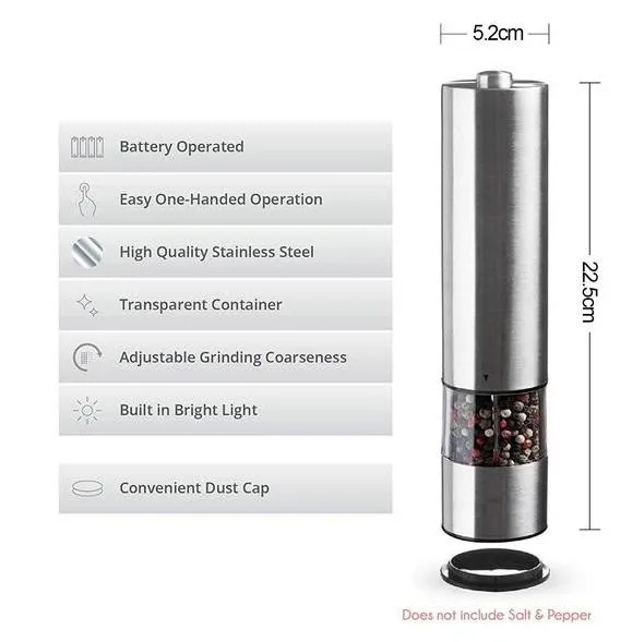 Made with high-quality stainless steel, this grinder not only delivers superior performance but also boasts a stylish, modern look that complements any kitchen decor. The compact design makes it easy to store and use, while the electric operation ensures a hands-free, effortless experience. Ideal for home cooks, chefs, and coffee lovers, this grinder provides a simple yet efficient solution for grinding various kitchen ingredients.