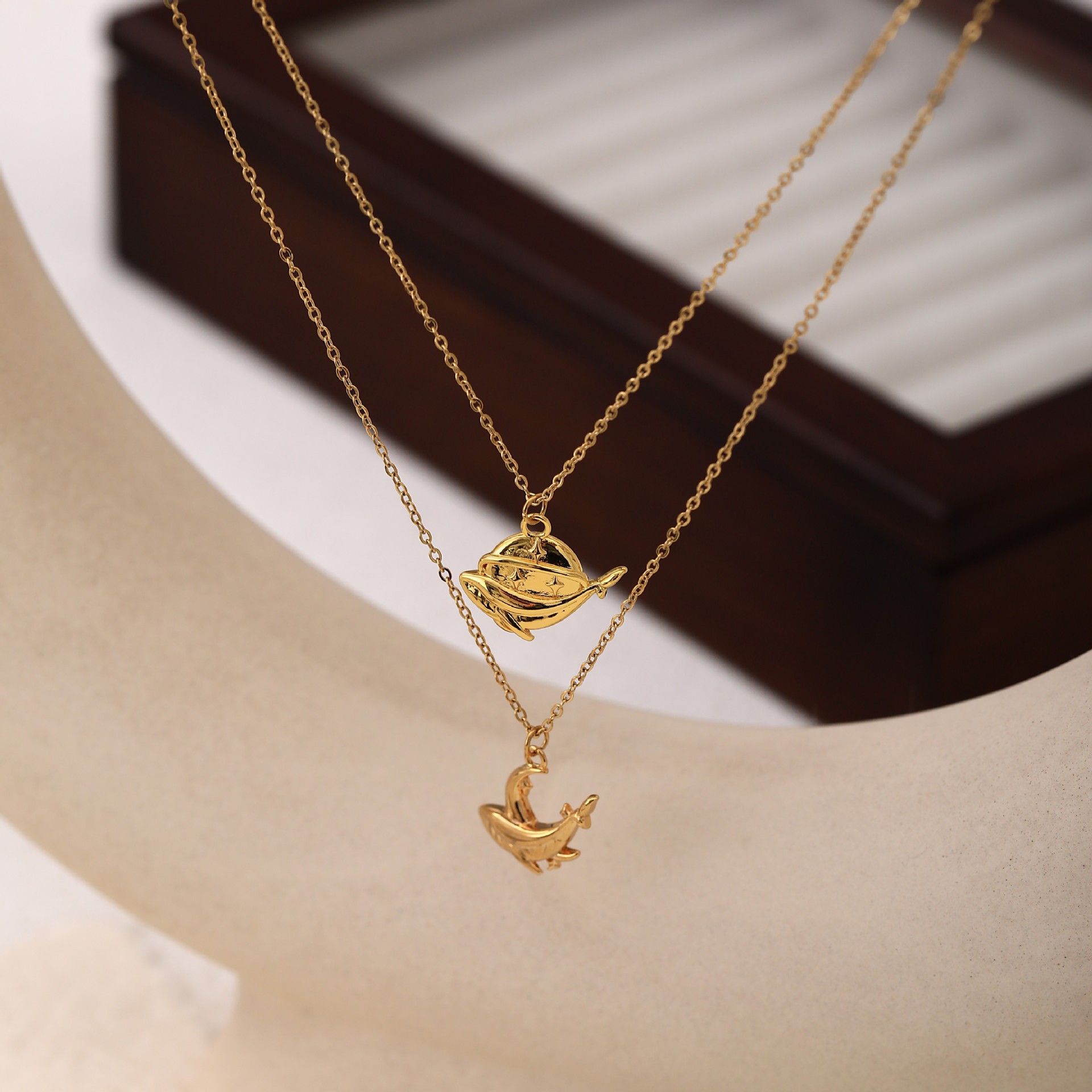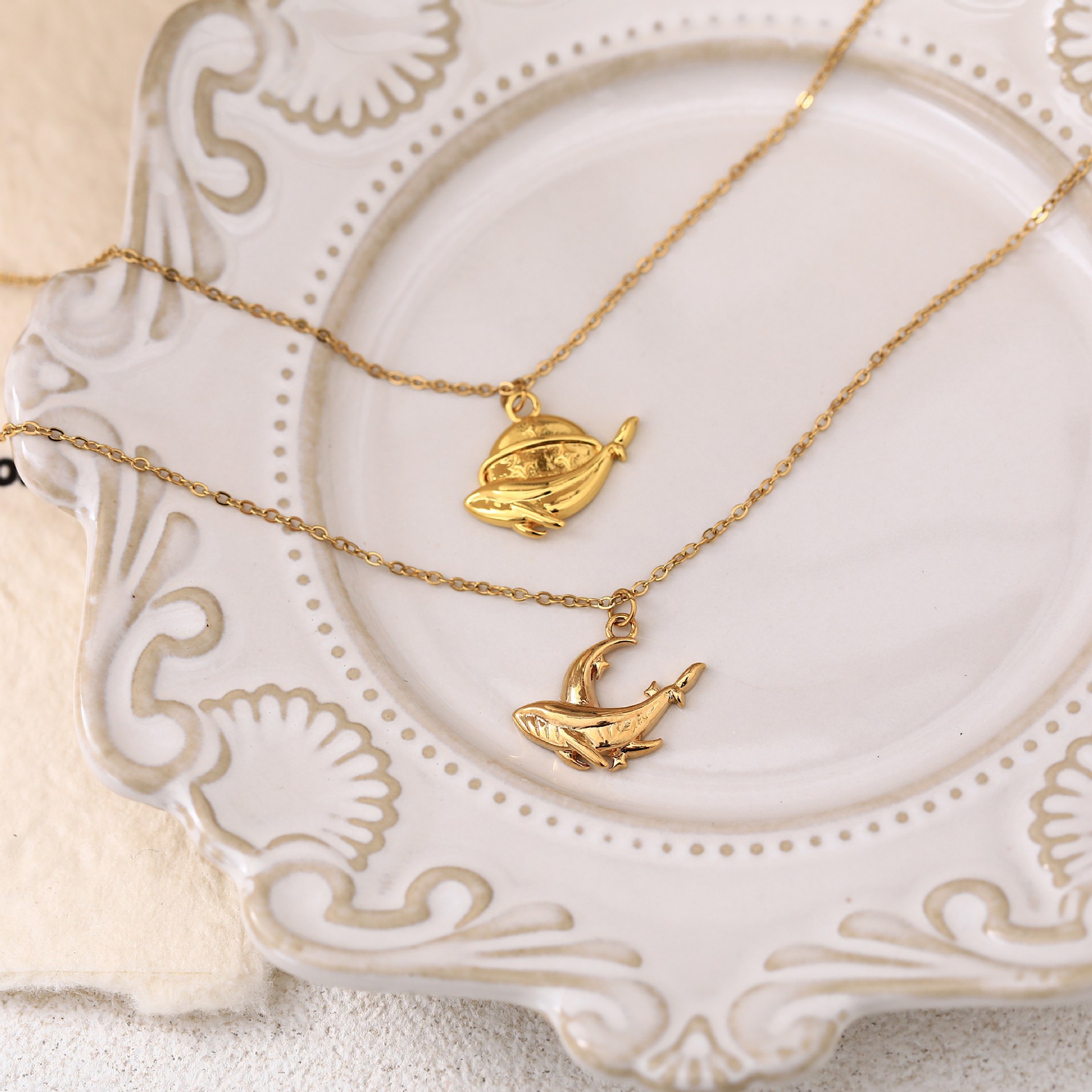 With its harmonious blend of sun, moon, and whale imagery, this necklace embodies themes of balance, freedom, and connection with nature, all while maintaining a sleek, modern aesthetic. Whether you're dressing up for a special event or adding a meaningful touch to your everyday outfit, this necklace is sure to make a statement and hold deep personal significance.