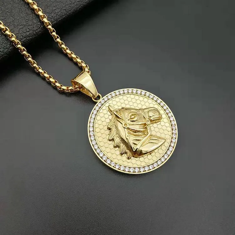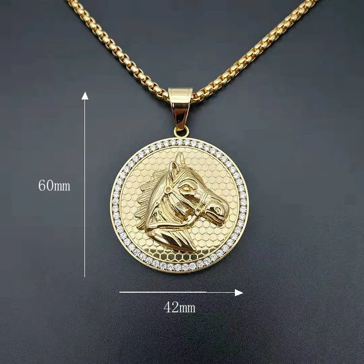 Stainless Steel Gold-Plated Zircon Horse Head Pendant
