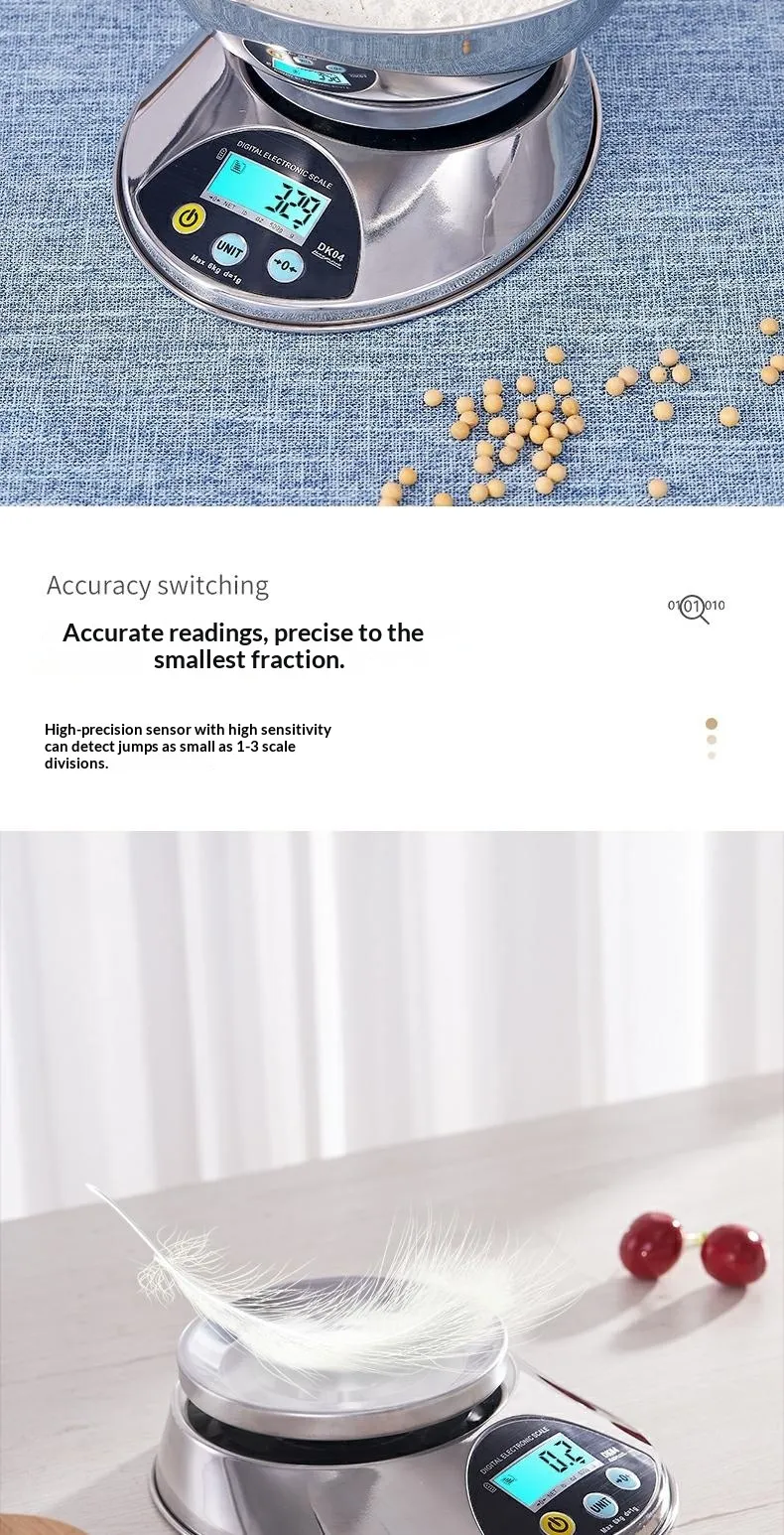 The Stainless Steel Kitchen Electronic Scale is the perfect choice for anyone who values accuracy and convenience in their kitchen. With its high-precision sensors, durable stainless steel surface, and compact design, it offers both practicality and style, helping you achieve perfect results every time.