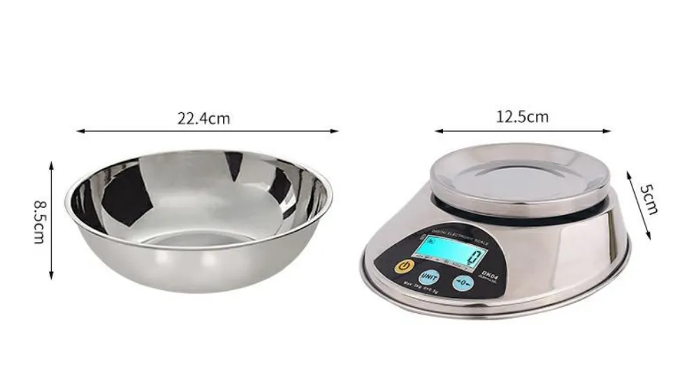 Specifications: 6 kg/1 g stainless steel platform + stainless steel bowl