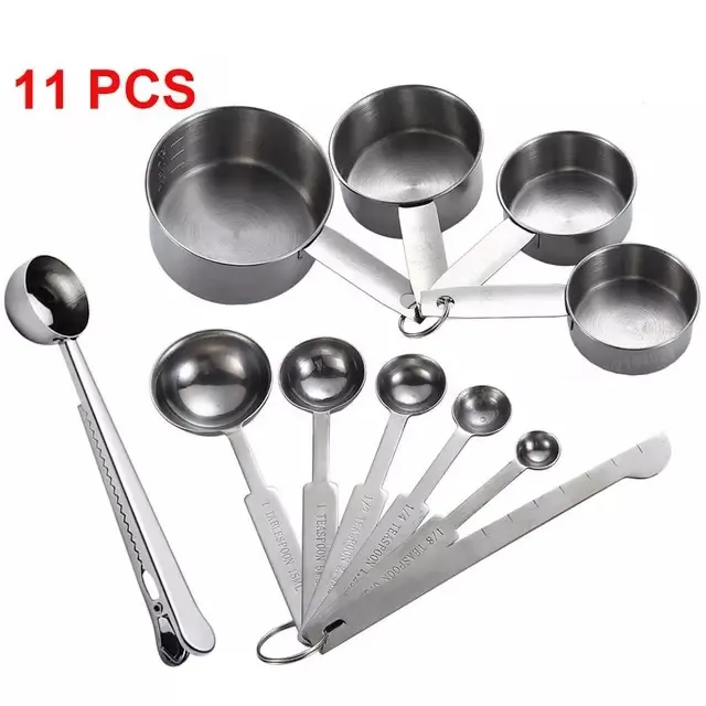 Crafted from durable, rust-resistant stainless steel, these measuring cups and spoons provide long-lasting strength and reliability. The sleek design not only looks elegant in your kitchen but also withstands daily use without tarnishing or bending.