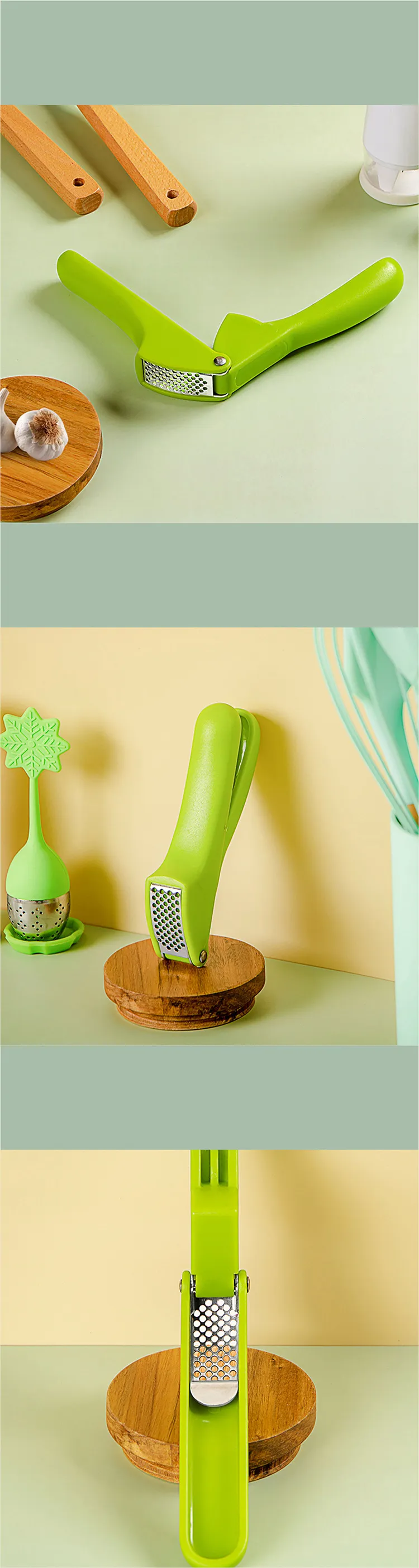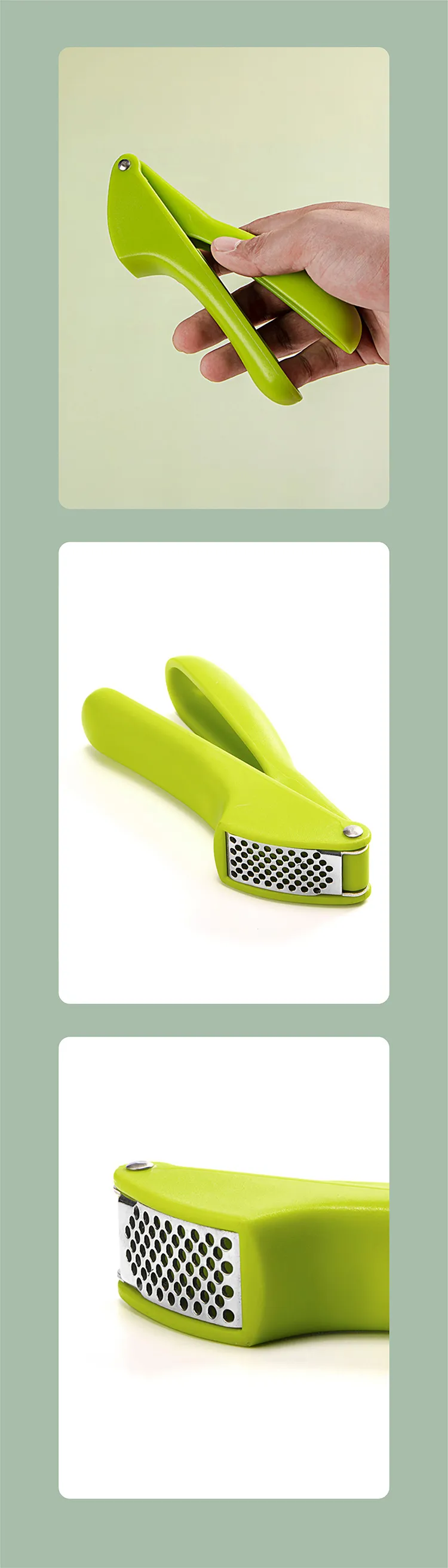 Make garlic and ginger prep quick and easy with the Stainless Steel Portable Non-slip Handle Kitchen Accessories Garlic Press. This multifunctional manual grinder is designed for both garlic and ginger, providing a powerful, effortless way to add fresh flavors to your dishes. With its ergonomic, non-slip handle and durable stainless steel construction, this kitchen tool is a must-have for home cooks and professional chefs alike.