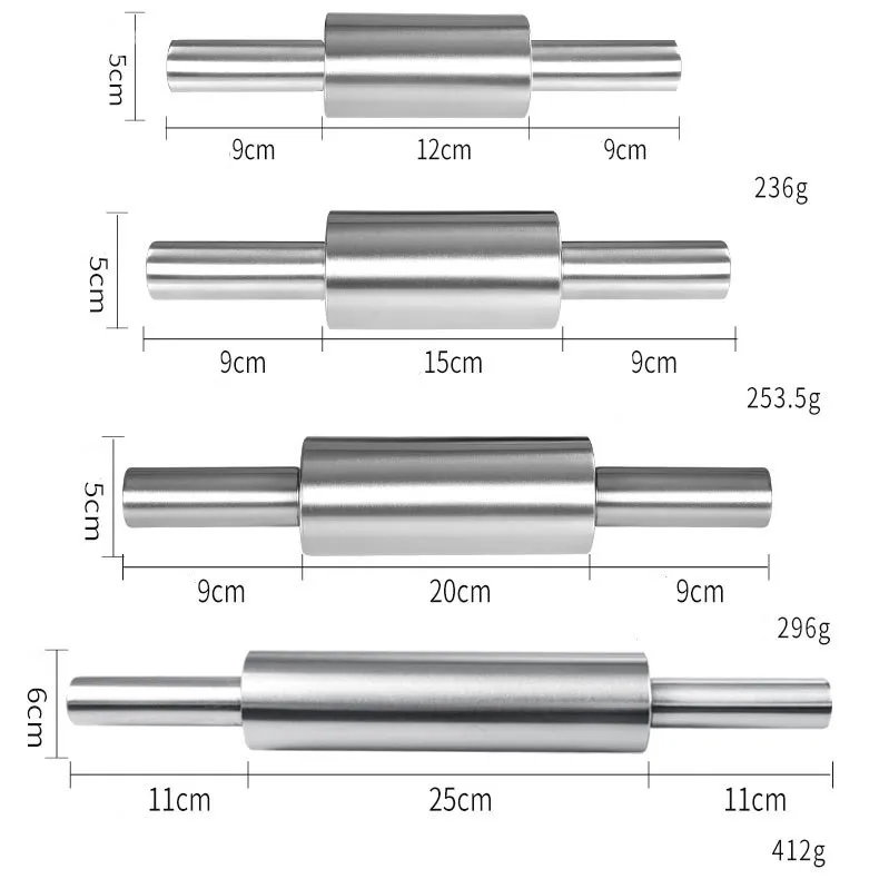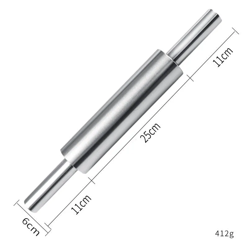 A stainless steel rolling pin is a practical kitchen tool designed to help flatten and shape dough quickly and evenly. It is ideal for preparing pastry, cookie dough, pizza dough, pie crusts, and other baking mixtures that need a smooth and even finish before cooking. Whether you are baking for family meals, special occasions, or everyday treats, this rolling pin makes dough preparation easier and more manageable.