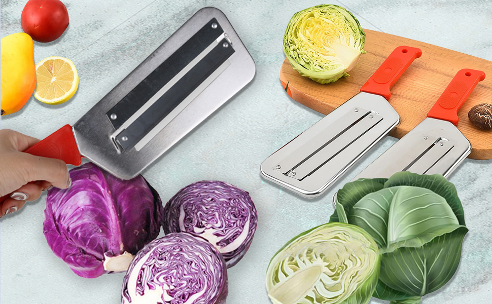 The cabbage cutter is made of high-quality stainless steel material which is durable. Non-slip handle, double blade design, the kitchen chopper knife is safe because of the edge warping protection.