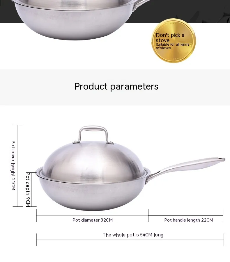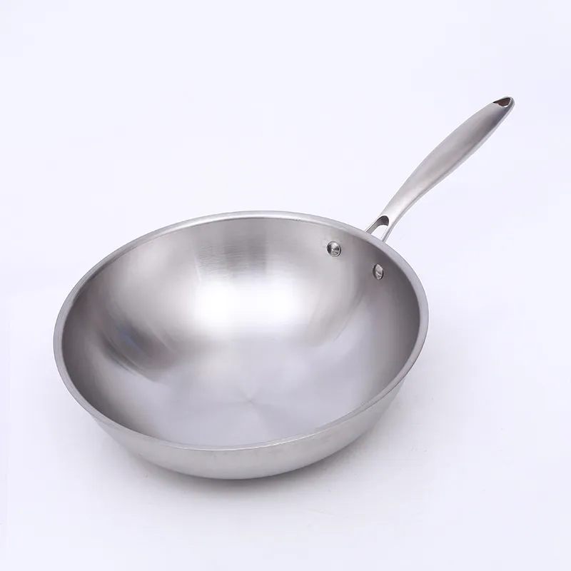 The Stainless Steel Wok is constructed from premium-grade 304 stainless steel, ensuring even heat distribution and superior durability. The multi-layer base, often featuring an aluminium or copper core, ensures rapid and consistent heating across the entire cooking surface — ideal for searing, browning, and stir-frying.