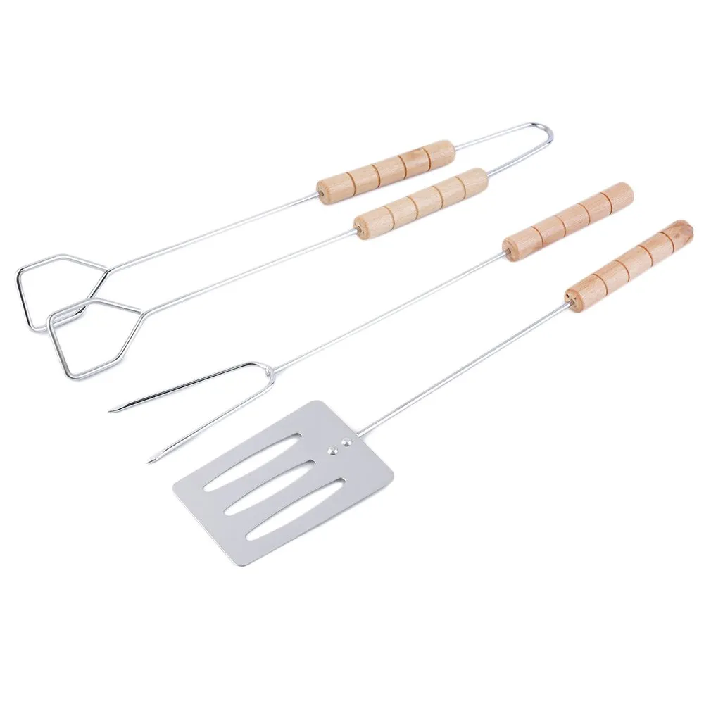 The stainless steel construction ensures long-lasting durability, while the wooden handles provide a comfortable grip that stays cool even during long grilling sessions. This high-quality set is perfect for any BBQ enthusiast looking to cook with ease and precision.