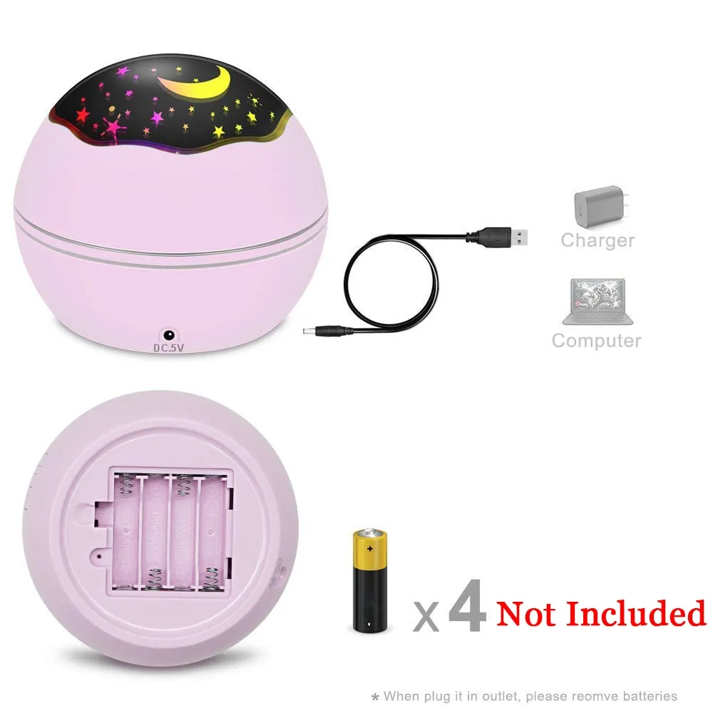 The Star Projector Lamp is a soothing and beautiful light feature that transforms any bedroom into a peaceful, starry sanctuary. Designed specifically for babies and young children, this projector emits soft, calming lights that create a serene environment perfect for sleep. Its gentle light patterns and ambient glow help to promote relaxation and sleep by projecting a starry night sky on walls or ceilings. The convenient USB charging option makes it easy to power the lamp from any device, whether it's a power bank, computer, or USB wall adapter. Its ball design adds a whimsical touch to your child's room while providing functional, sleep-enhancing light.