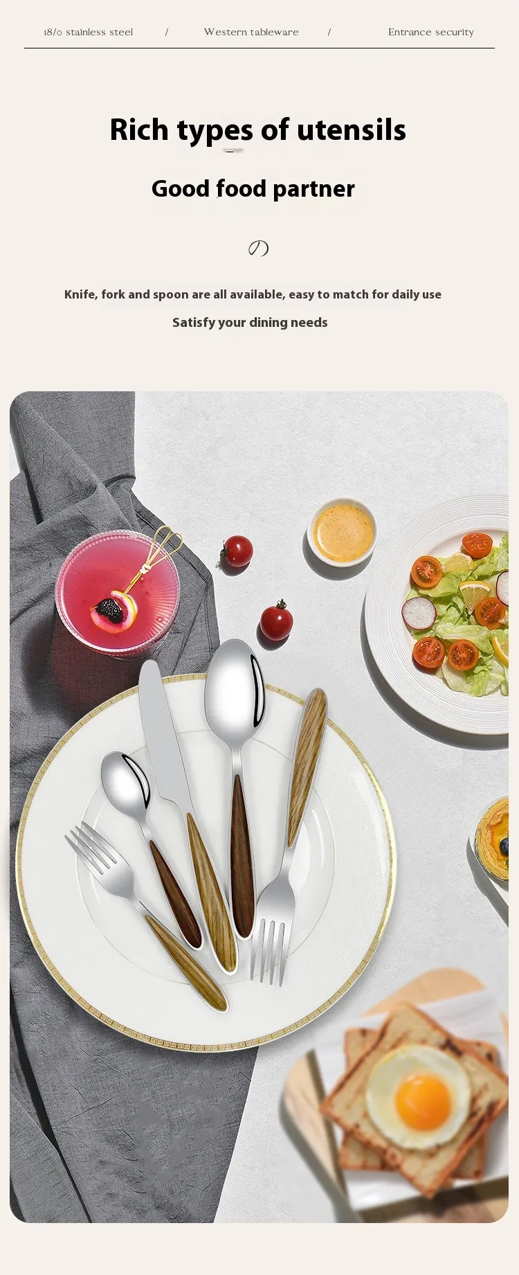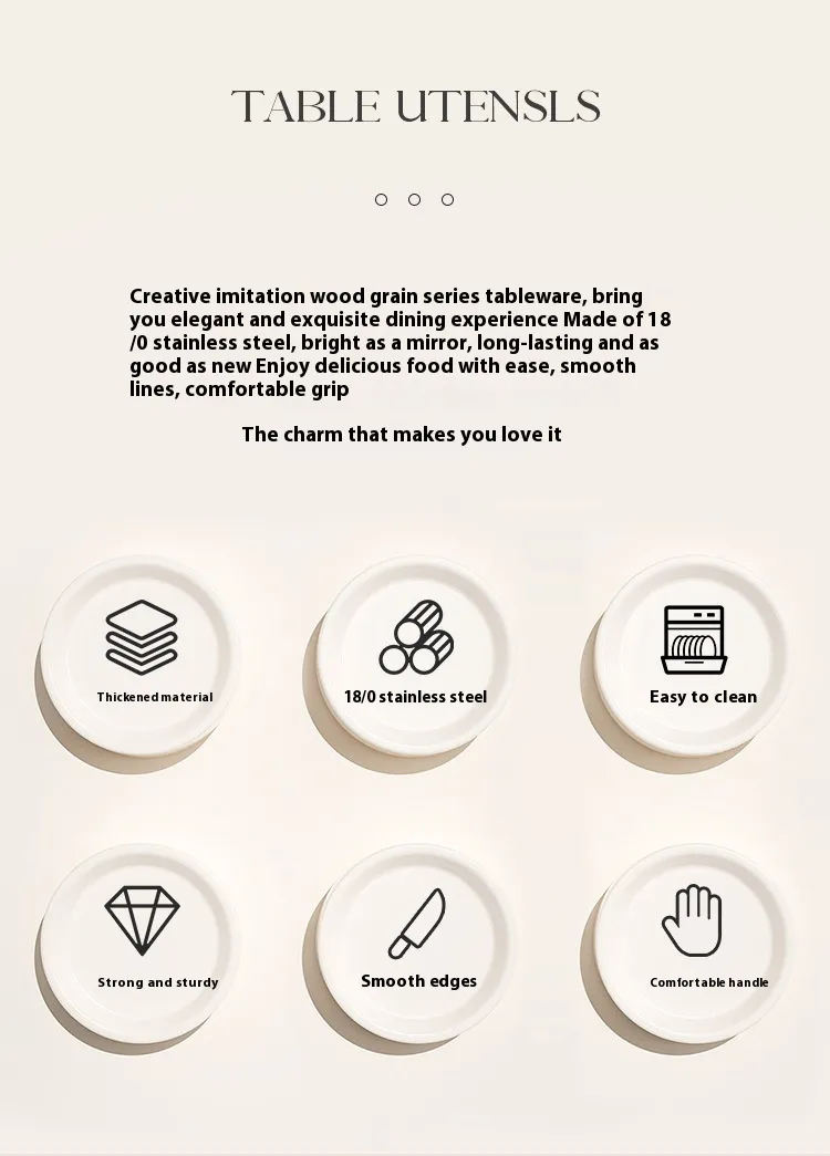 spoon, Rosewood grain main knife, Rosewood grain fork, Rosewood grain main spoon, rosewood grain fork, Rosewood grain spoon