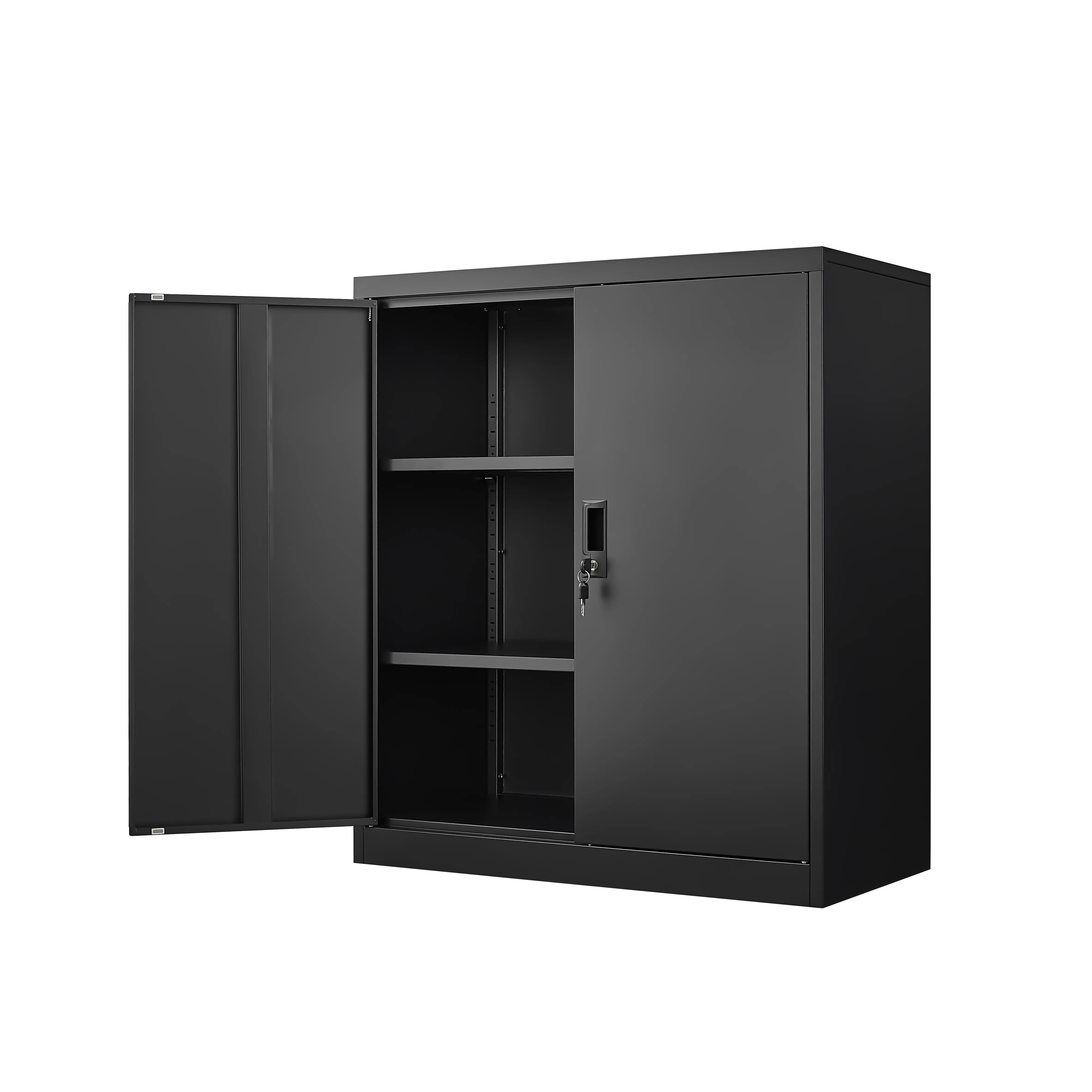 Adjustable Shelving: With adjustable shelves, this cabinet provides flexible storage options to accommodate items of different sizes, from paperwork to tools or personal belongings.