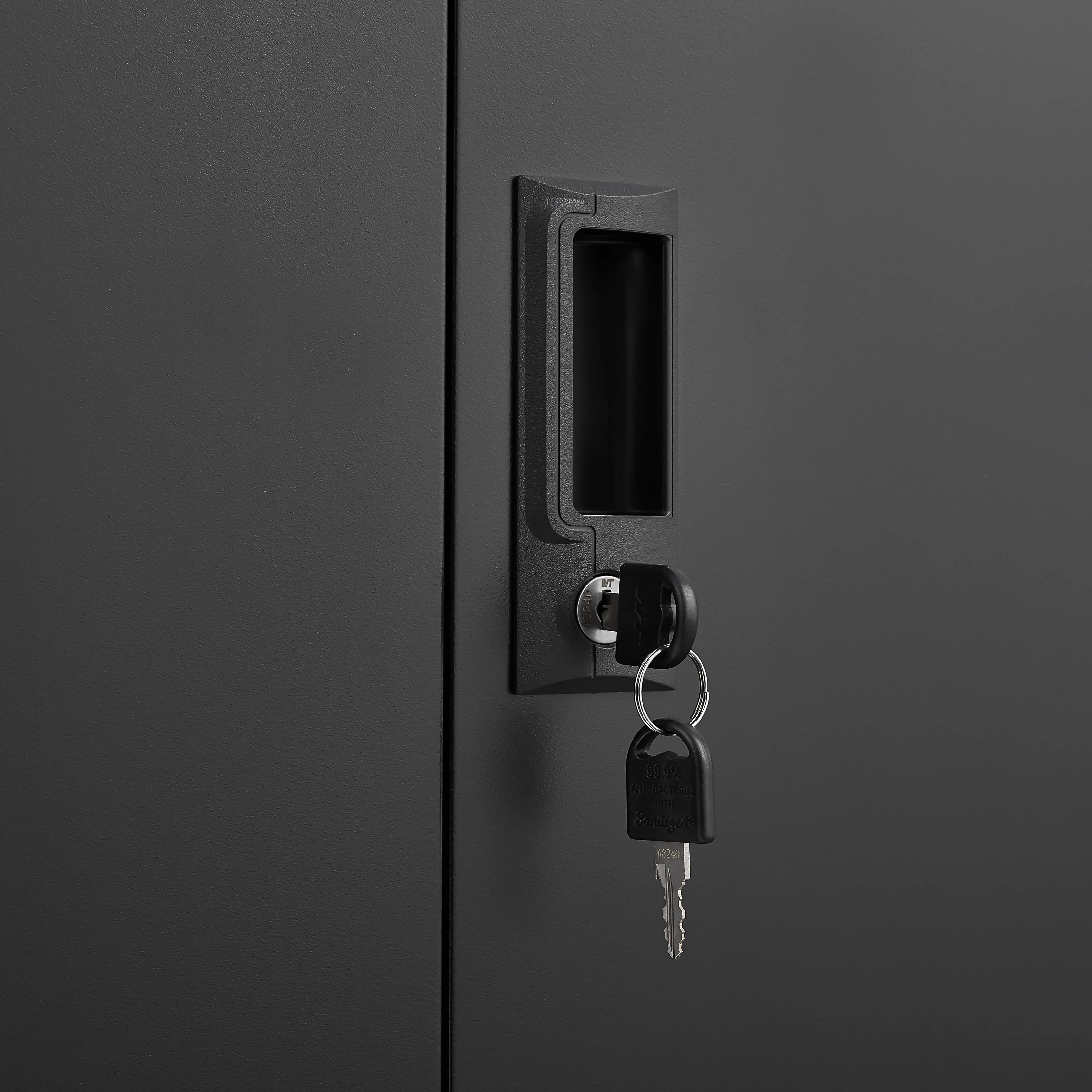 - Integrated molding process for a more aesthetic design; equipped with sturdy and durable locks that are difficult to pry open, and a more durable solid lock rod that is hard to cut. The rod protrudes outward when locked and hides inside the cabinet when opened.