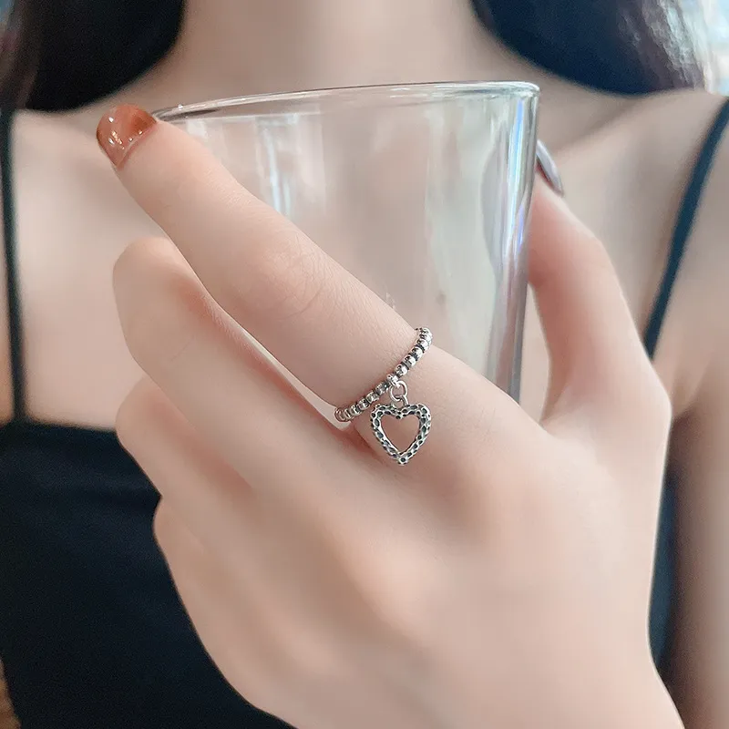 Sterling Silver Love Heart Pendant Ring