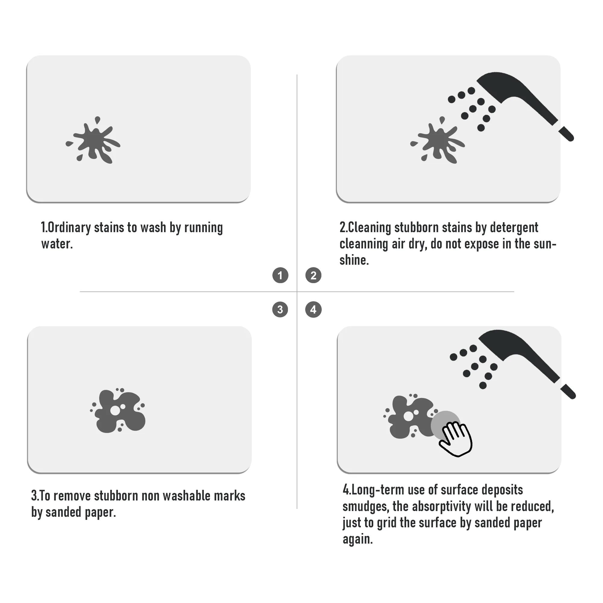 - Easy to Clean: Cleaning the mat is a breeze, requiring minimal effort. Simply rinse with water or wipe with a damp cloth as part of your daily routine. Stubborn stains can be gently removed with sandpaper, leaving no trace behind.