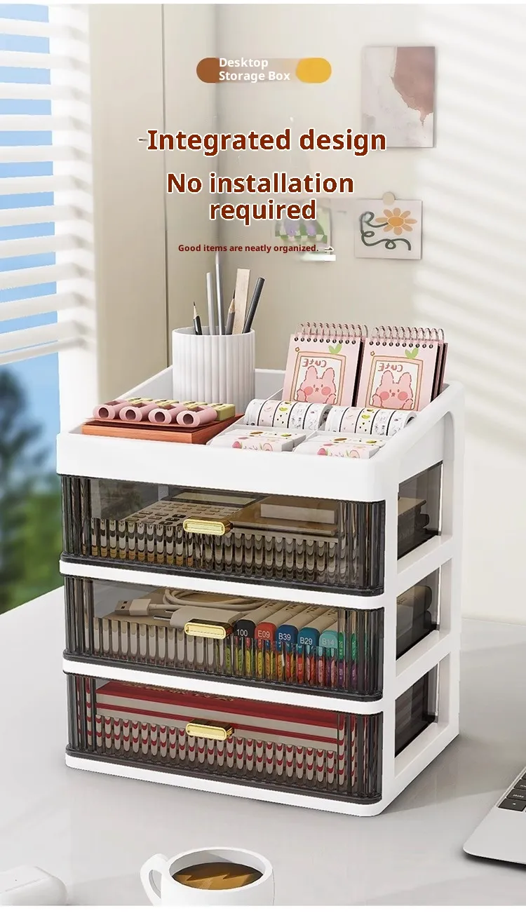 The Storage Box with Drawer is crafted from high-quality, durable materials such as plastic, wood, or metal, depending on the design, offering a reliable and sturdy solution for everyday storage needs. Featuring a combination of open and drawer-style compartments, this storage box is perfect for organizing everything from stationery and files to personal items, keeping them within easy reach.