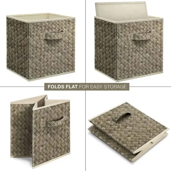 Foldable Fabric Bins for Shelves For Closet, Utility Room, Storage Room,From Disguising Clutter To Hiding Dirty Laundry Or Simply Keeping Everyday Essentials In One Place, There's A Basket For Every Storage Conundrum You Come Across In Your Home.These Are Attractive Baskets.It Could Be Used Many Different Ways. You Will Be Able To Completely Organize Your Space With Them. These Fabric Storage Cubes Are Well Made And Will Go Far With Organizing Different Things In Your Home.General Storage: Pantry Dry Goods, Linen And Towels, Storage Basket For Groceries In The Car.