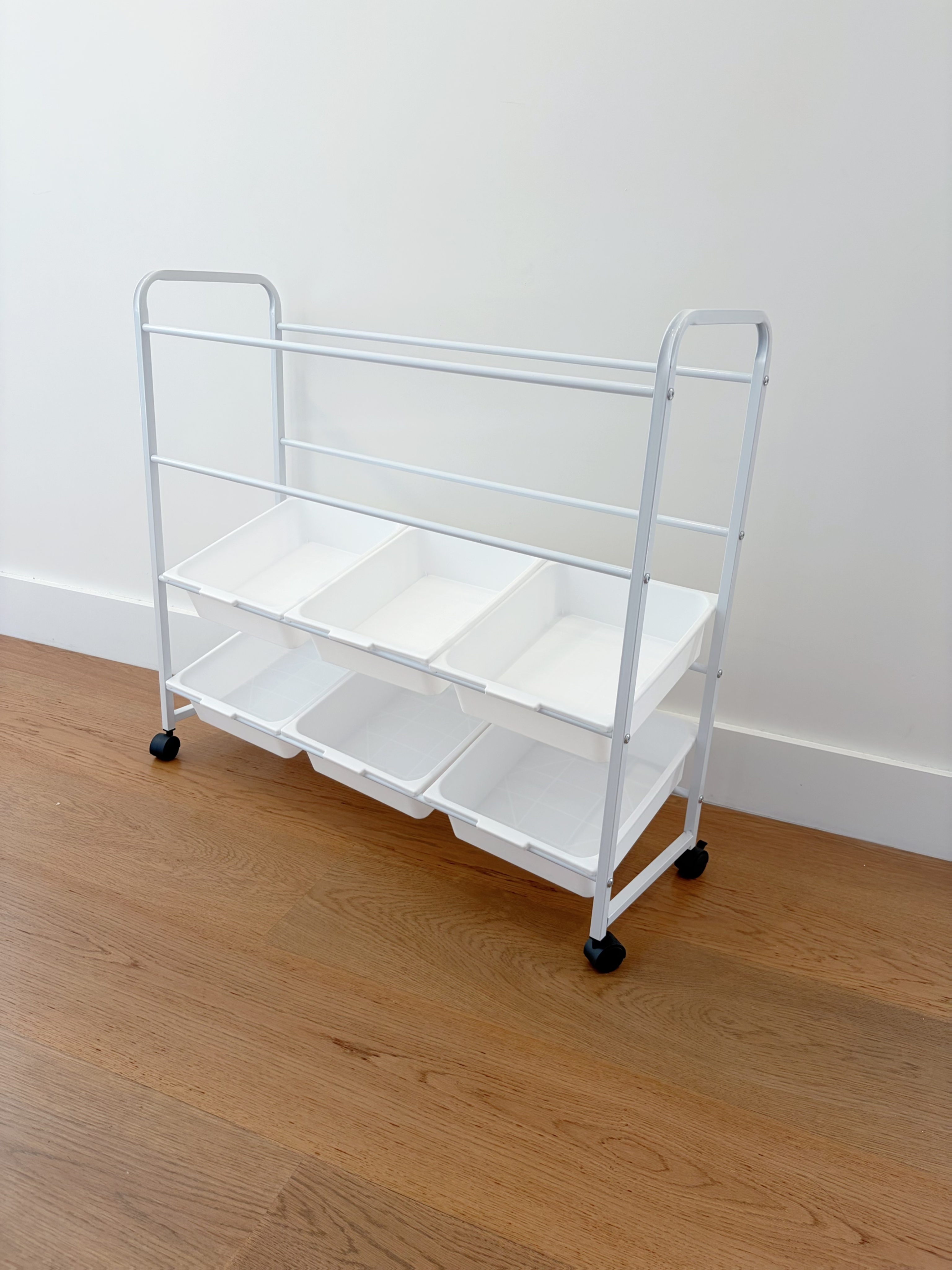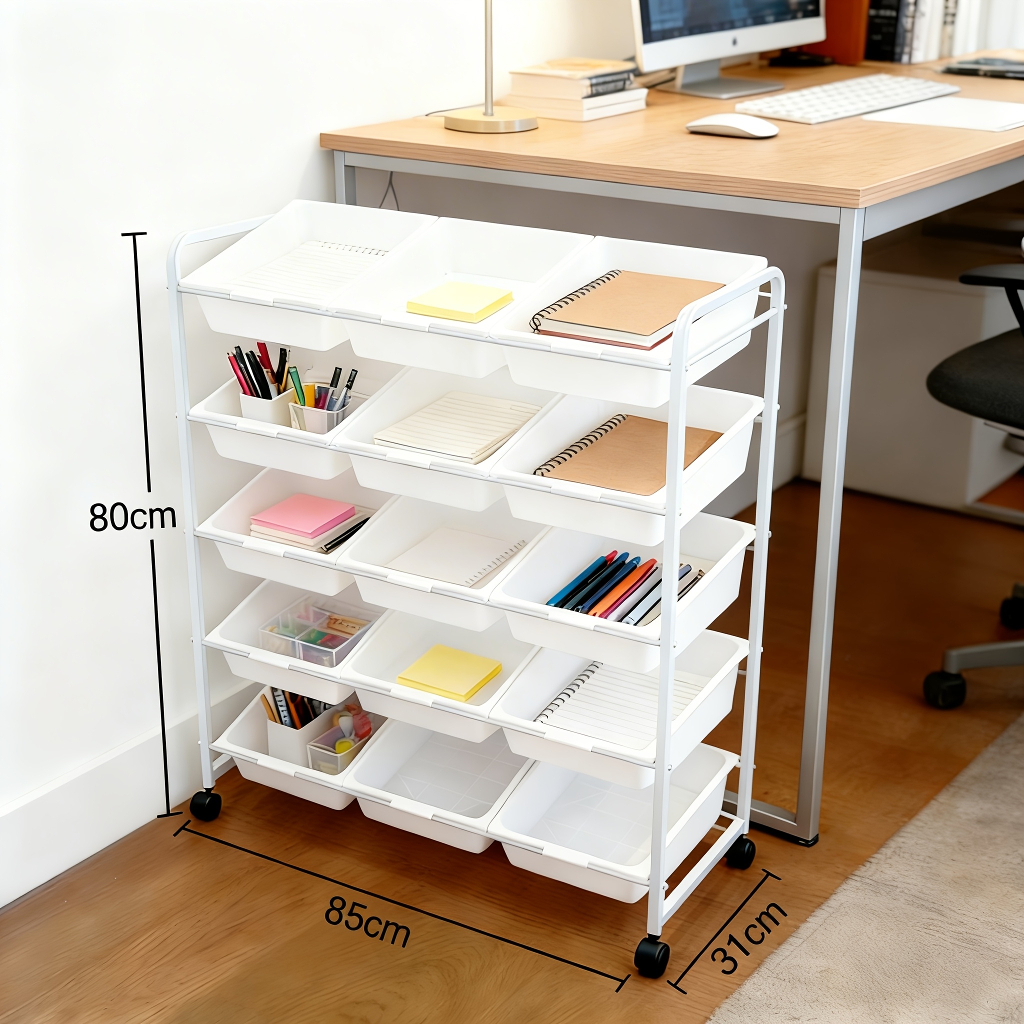 - Portable with Wheels: The wheeled design ensures that the storage rack is easy to move around, allowing you to reposition it as needed in your office, living room, kitchen, or bathroom.