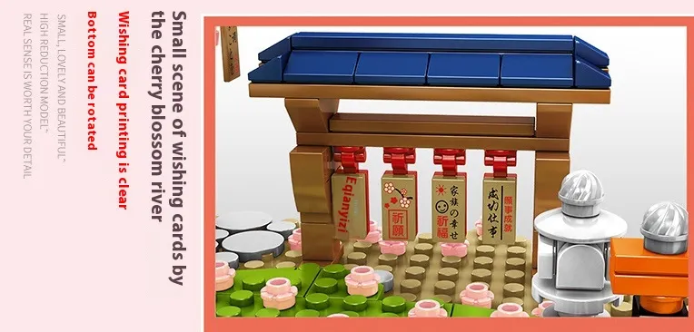 Recreate the serene beauty of a Japanese-inspired cherry blossom scene with the Street View Cherry Blossom Pavilion Building Model Decoration. This intricate set features small particle blocks to construct a stunning pavilion surrounded by blooming cherry blossoms. Perfect for collectors, hobbyists, and creative builders, it offers a blend of artistry and relaxation.