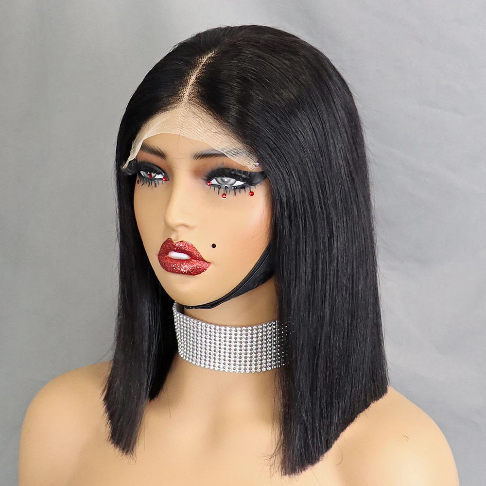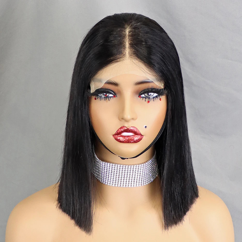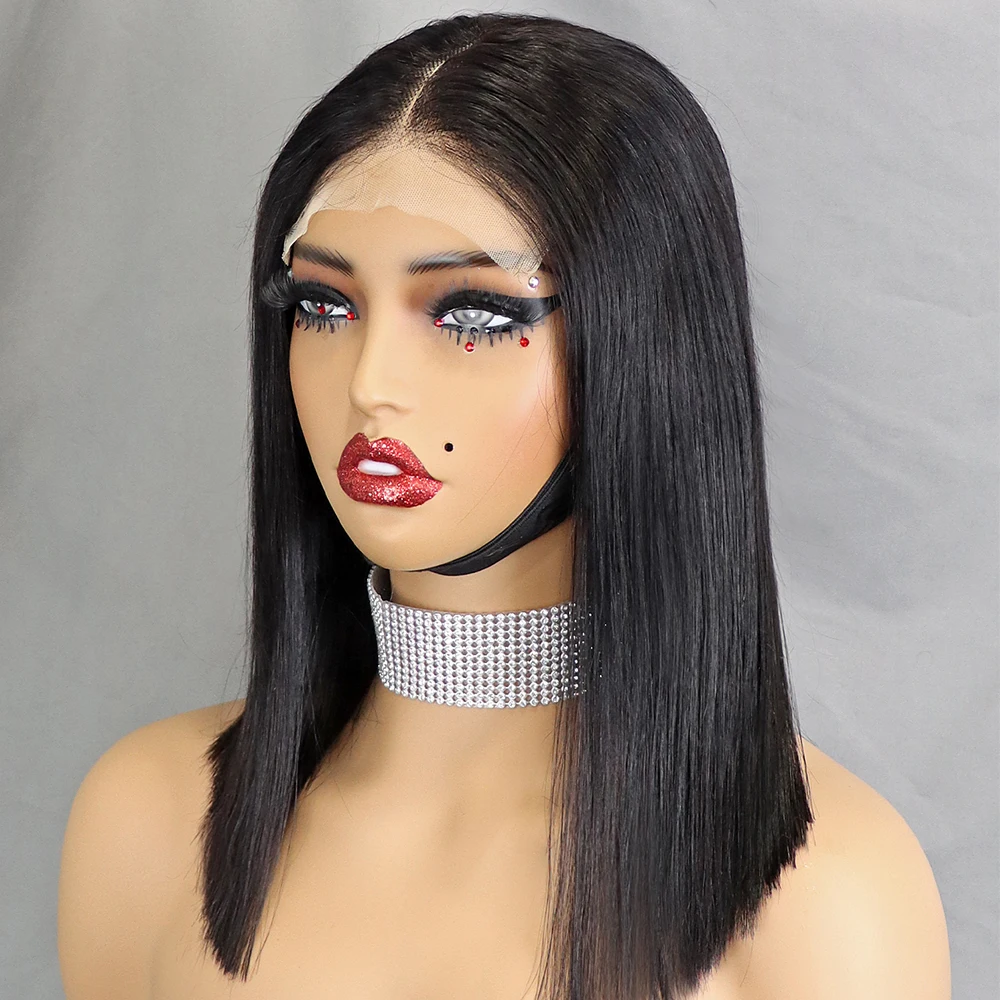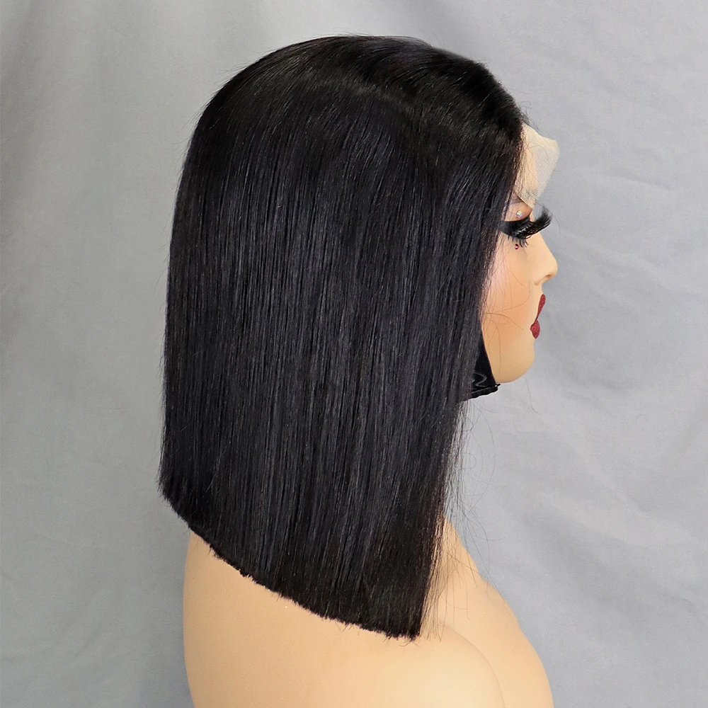 Stretched Length: 10inches, Lace Wig Type: slide part, Density: 100% - 350% 5x5 HD Lace Glueless Wig 10-14 inch Blunt Cut Bone Double Drawn 12A Hair Straight Bob Human Hair Wig Closure Frontal Wigs