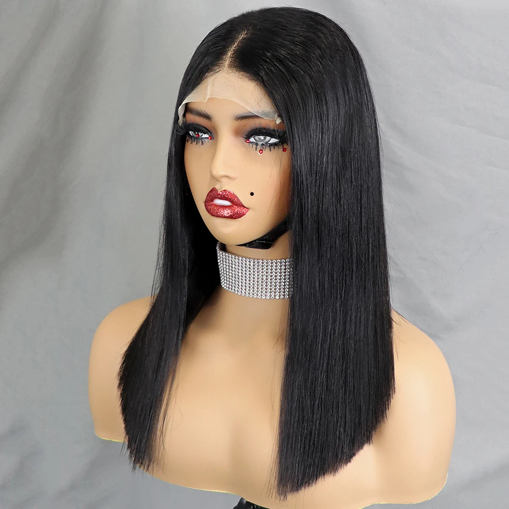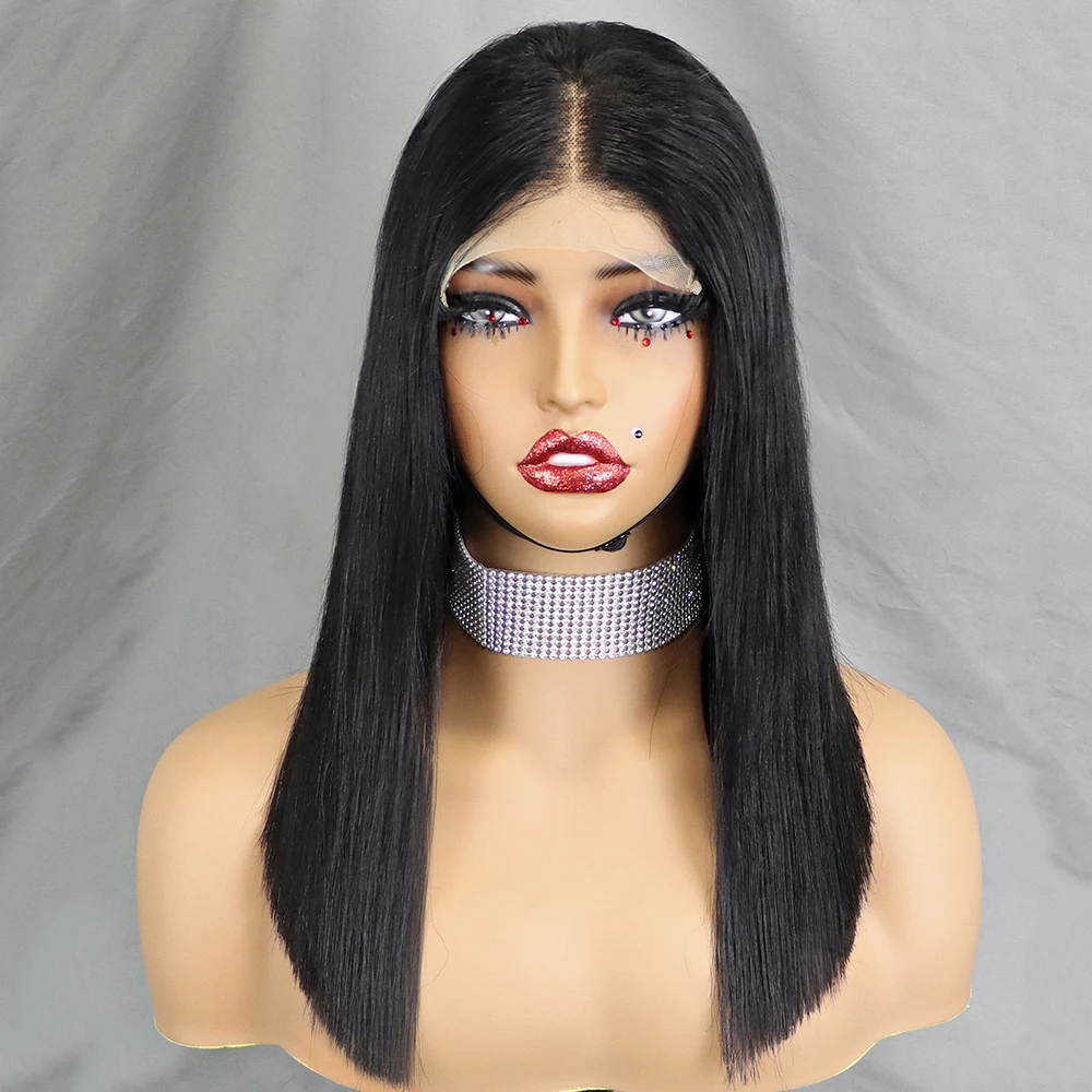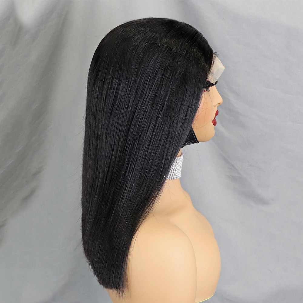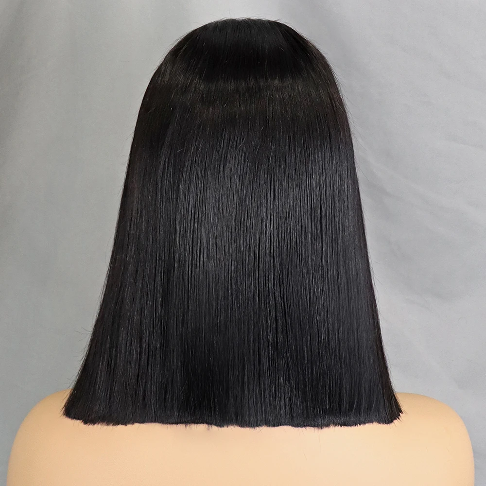Stretched Length: 10inches, Lace Wig Type: slide part, Density: 100% - 350% 5x5 HD Lace Glueless Wig 10-14 inch Blunt Cut Bone Double Drawn 12A Hair Straight Bob Human Hair Wig Closure Frontal Wigs