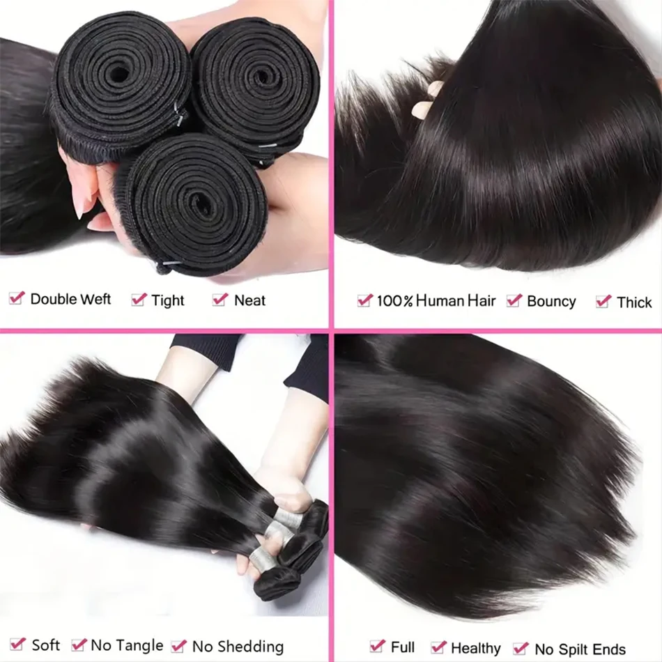 Stretched Length: 16 16 16 - Peruvian Bone Straight Human Hair Bundles Deal Unprocessed Virgin Hair Extensions Long Thick Cheap Brazilian Hair Weave Natural