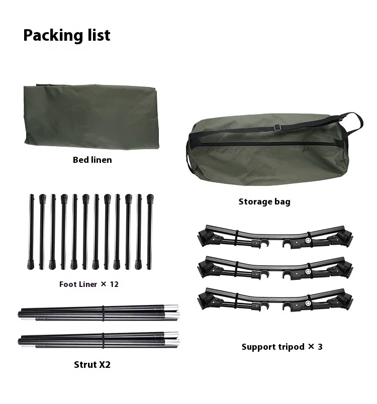 Bed cloth * 1 Foot lining tube X12 Support rod X2 Storage bag * 1 Support bracket X3