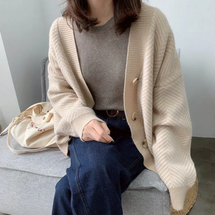Stylish and Modern: The bold striped pattern adds a chic and contemporary touch to the classic cardigan style.