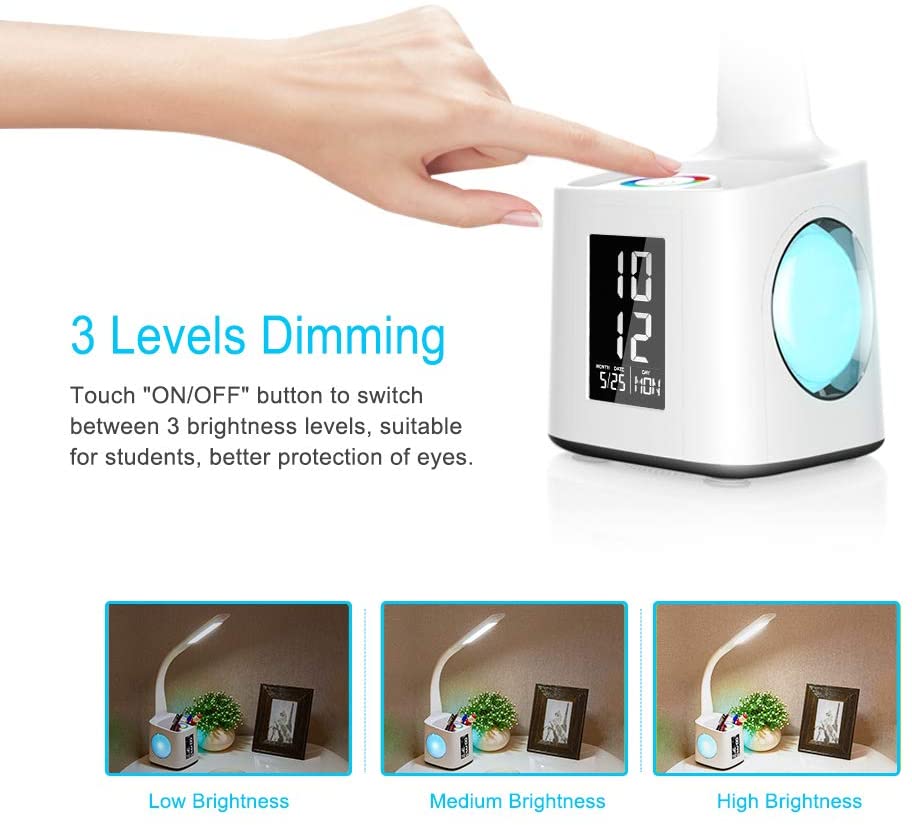 2. Multifunction: 7 in 1, desk lamp with USB charging port, 256 color-changing base, pen holder, clock, calendar and LCD screen to meet all