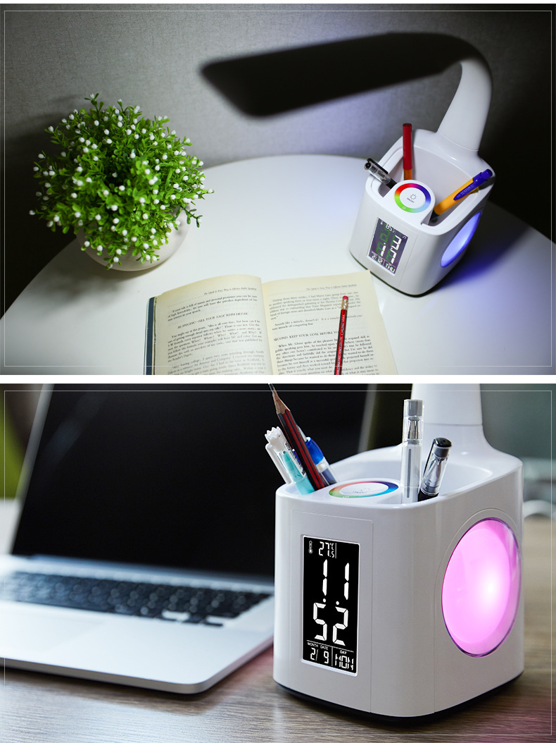 1. Lantern: night light + pen holder + perpetual calendar + time + alarm clock.