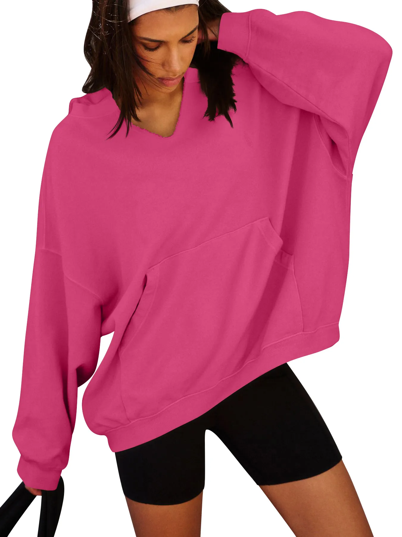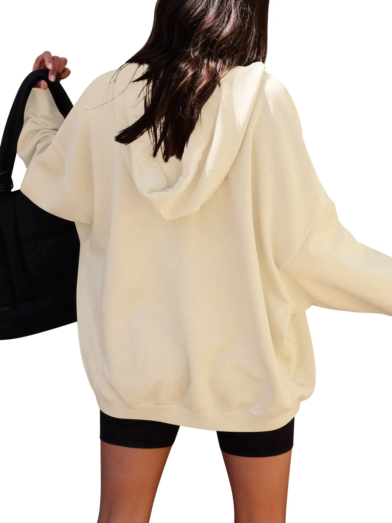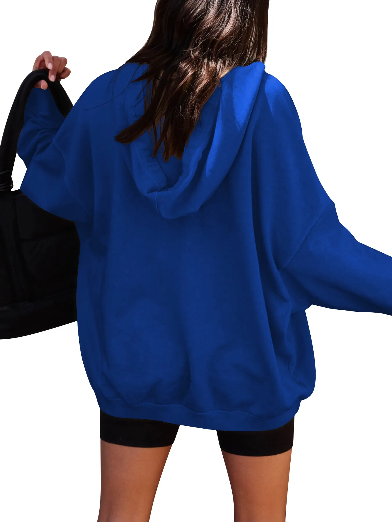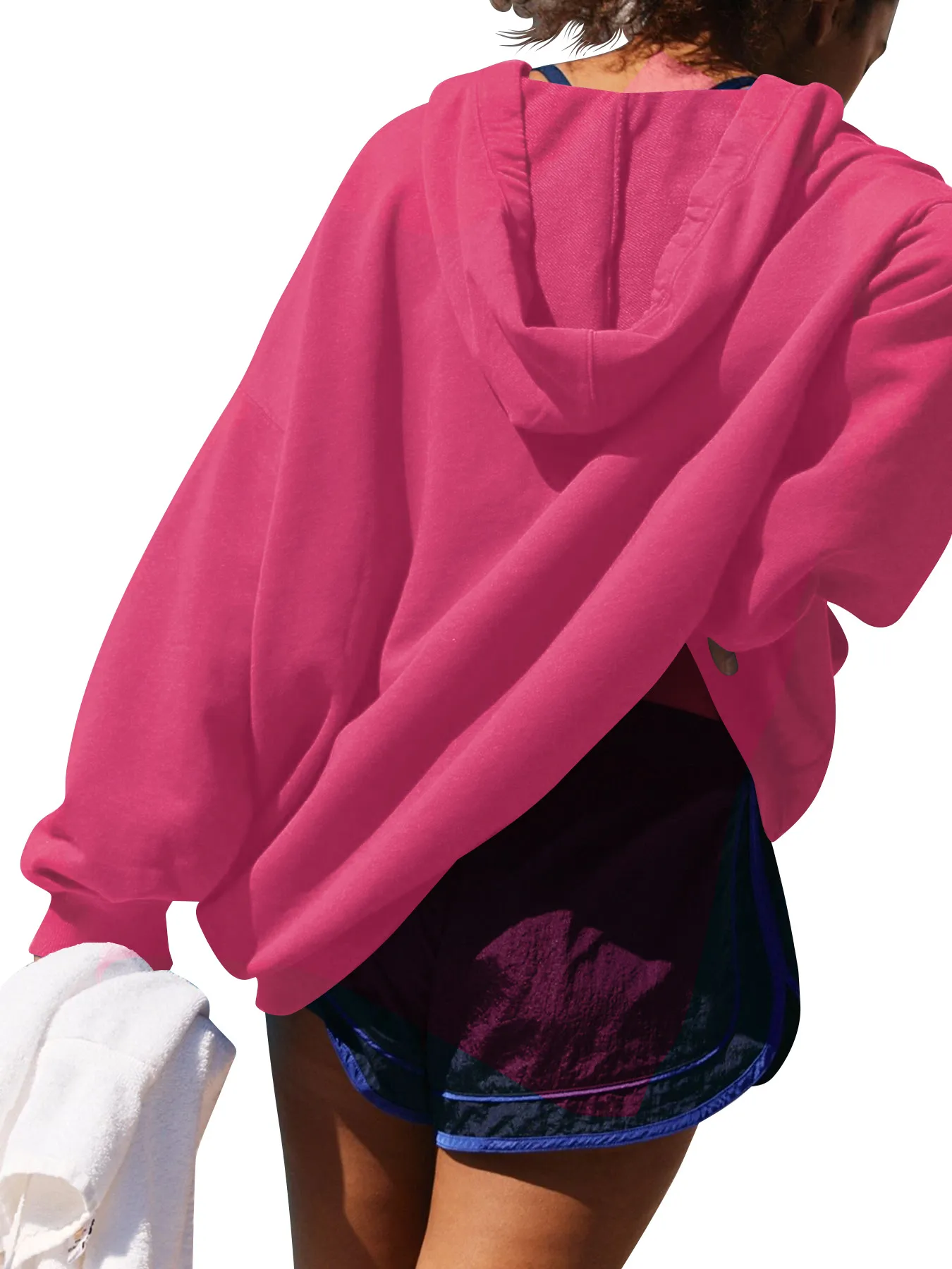 Sudadera informal de gran tamaño con capucha y bolsillo para mujer