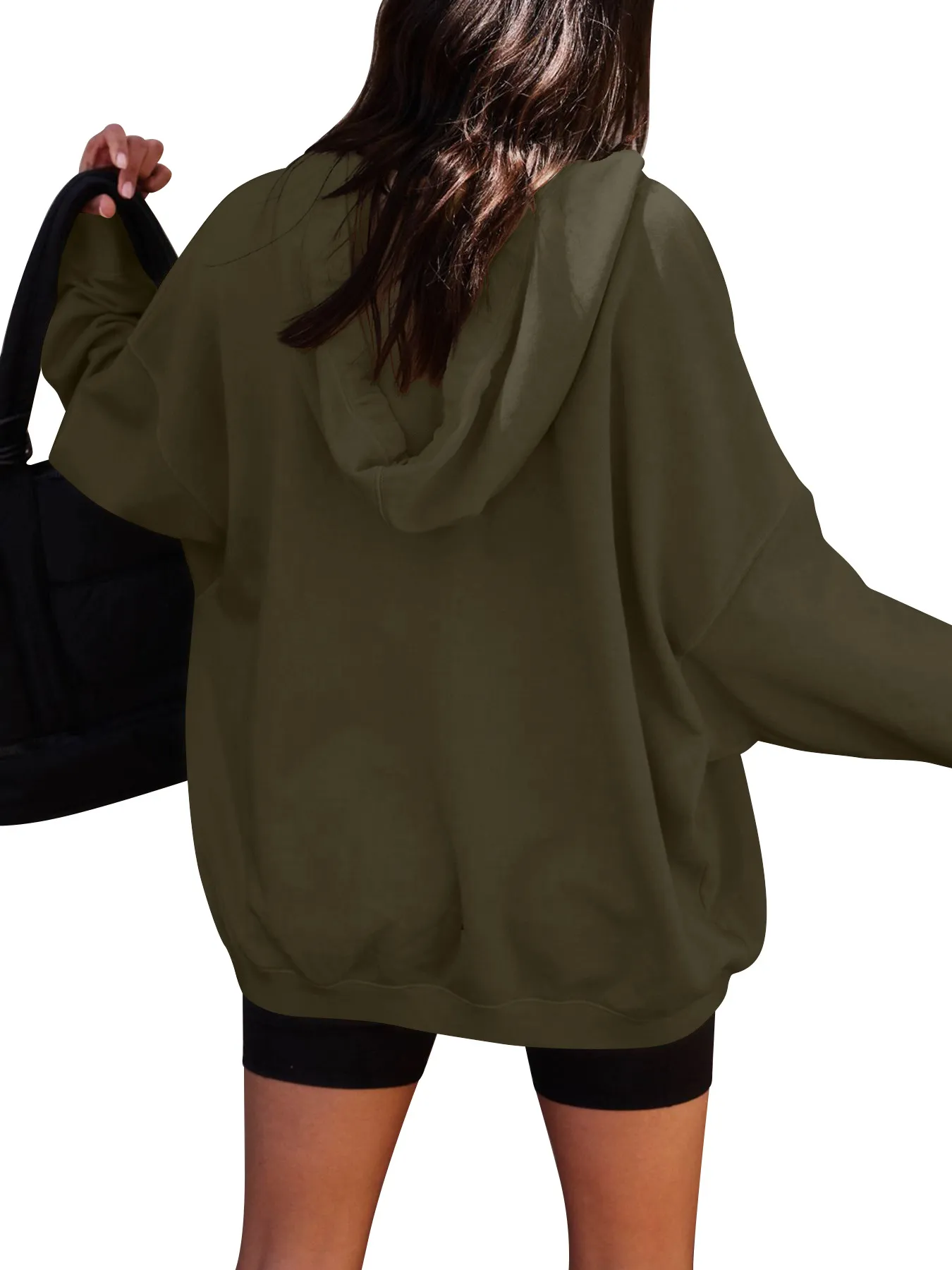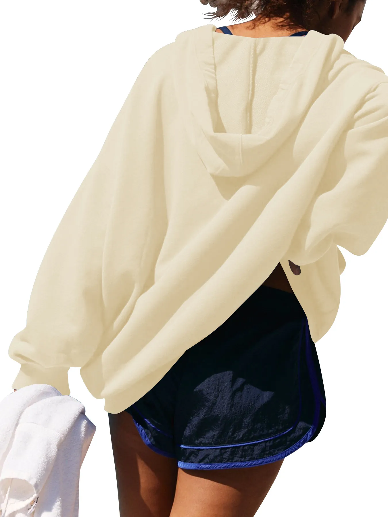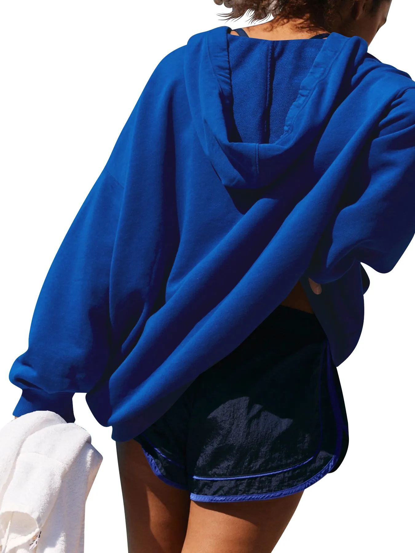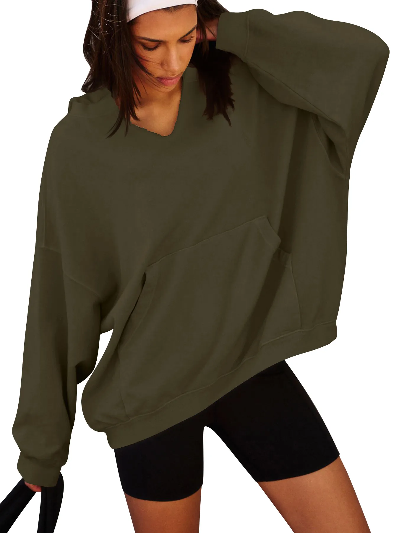 Sudadera informal de gran tamaño con capucha y bolsillo para mujer