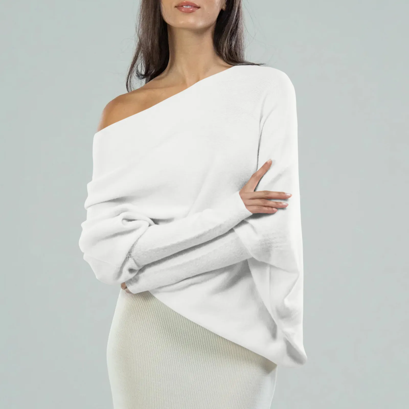 Suéter holgado con mangas de murciélago, sencillo, informal, a la moda, versátil, de color sólido, con cuello redondo para mujer