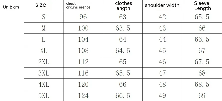 Tallas: S, M, L, XL, 2XL, 3XL, 4XL, 5XL