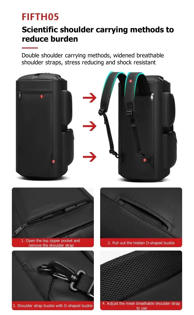Dry and Wet Separation: Features a dry and wet separation compartment to keep your clothes and shoes organized and dry.