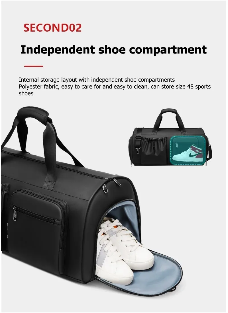 A Suit Bag with Shoe Compartment is the ultimate travel companion for professionals, frequent flyers, and anyone who wants to keep their formal wear pristine while on the move. Designed to hold a suit jacket, trousers, and shoes all in one convenient bag, this travel essential allows you to organize your wardrobe efficiently, avoid wrinkles, and protect your shoes from damaging your clothes.
