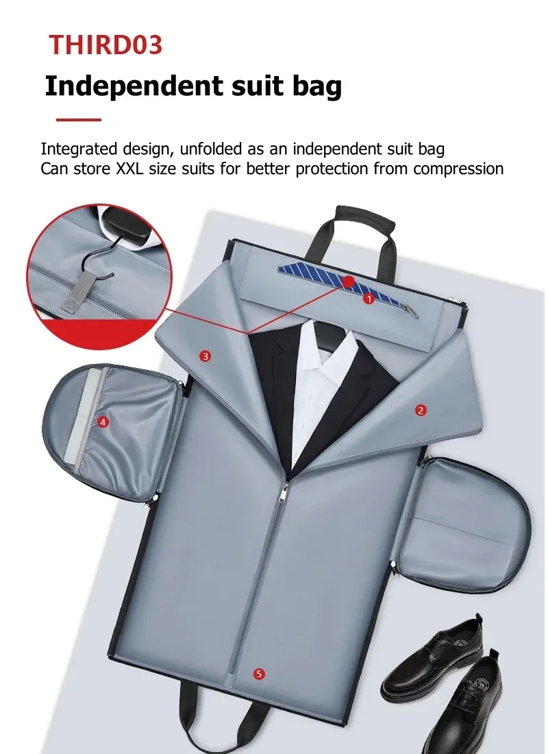 This separation is crucial for maintaining a professional appearance, especially when traveling long distances or through busy airports. The suit bag with shoe compartment keeps your entire formal outfit in one place, so you never have to worry about misplacing pieces or mixing shoes with your clothes.