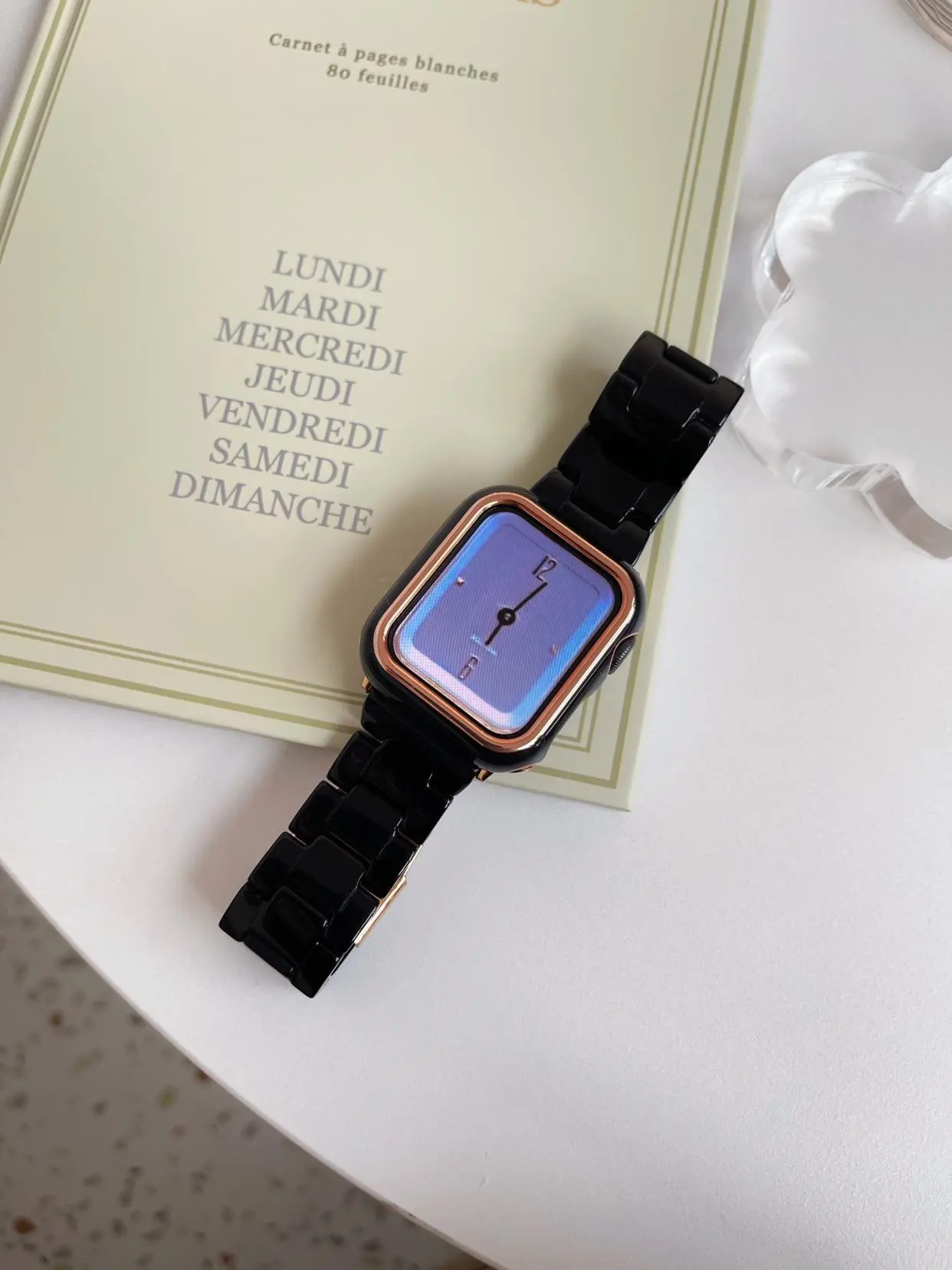 Color: white resin strap + white gold case, black resin strap + black gold case, pink resin strap + white gold case, dark green resin strap +
