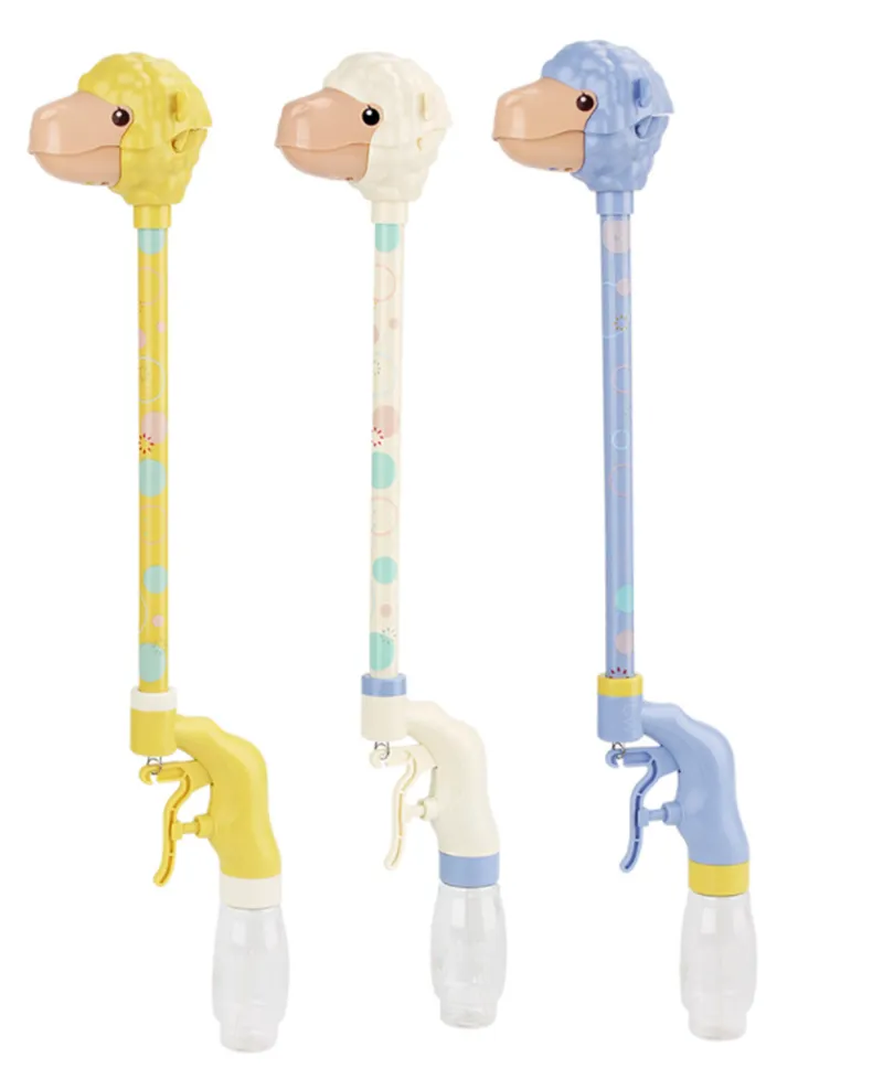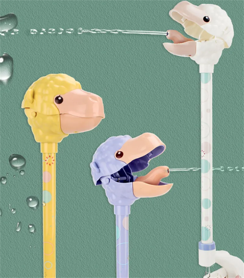 pressed. Children can interact with the toy by pushing it to spray water, creating an exciting and refreshing play experience. This fun