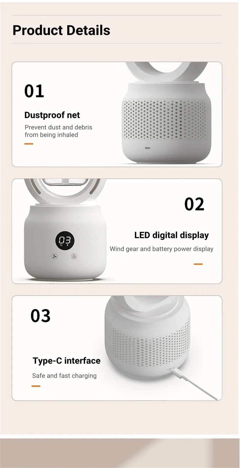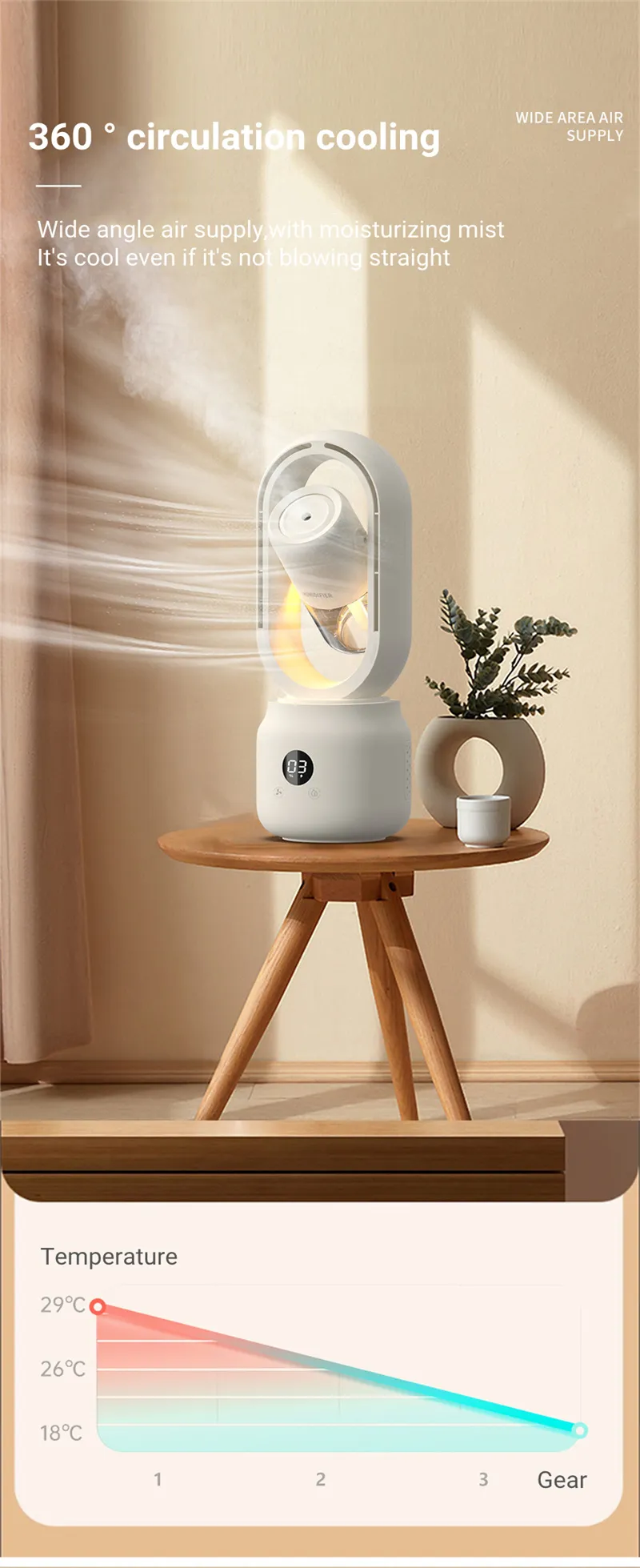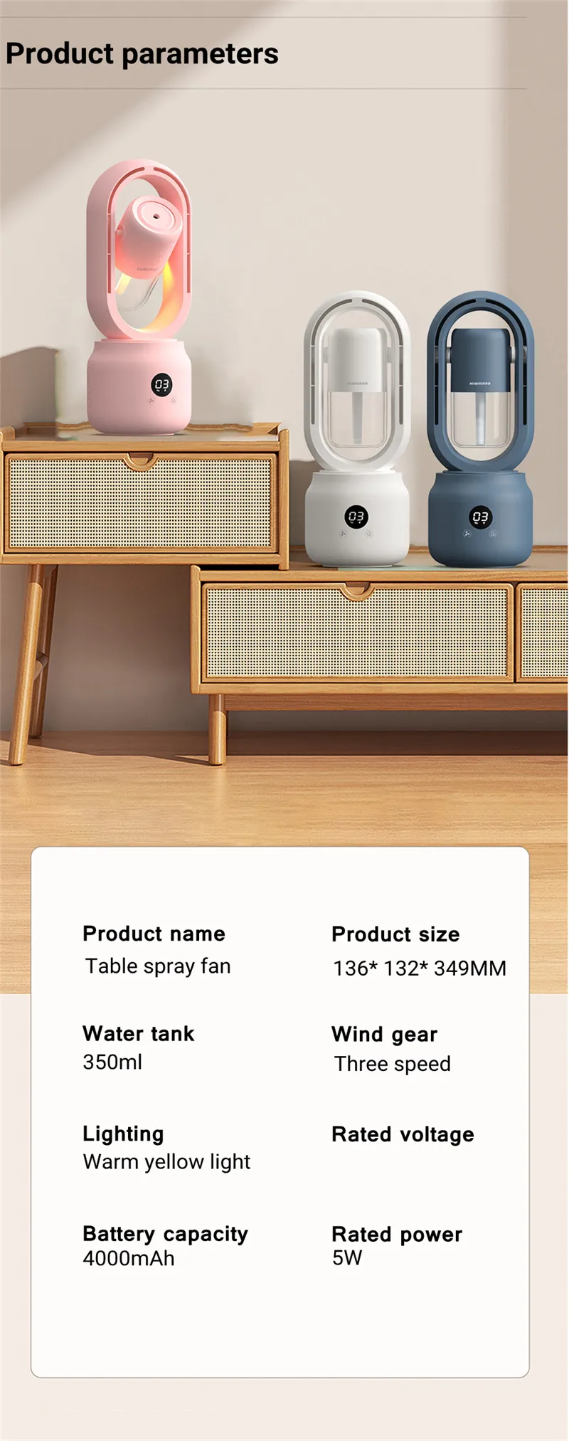 Summer Water Cooled Spray Mist Electric Fan USB Rechargeable Portable Wireless Air Humidifier Bladeless Ventilator Table Fan