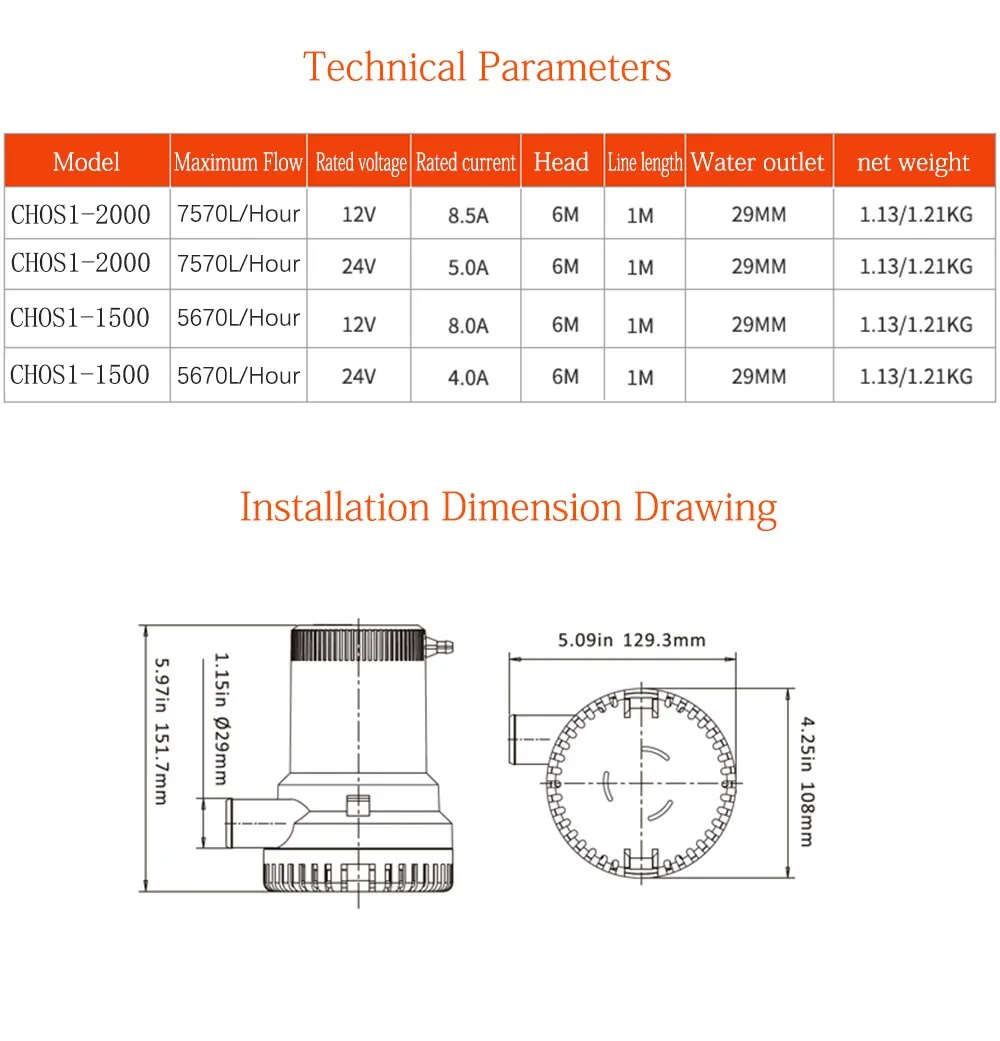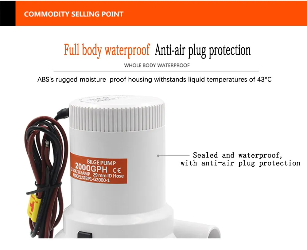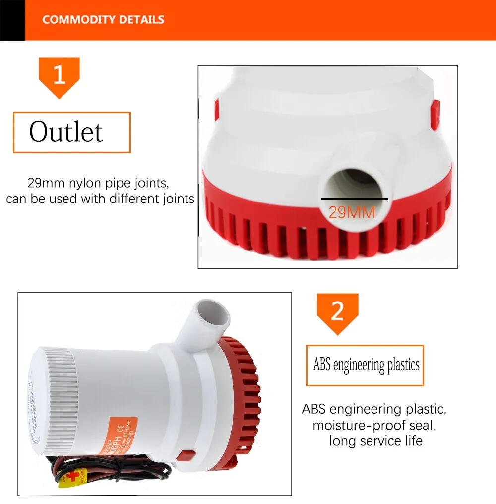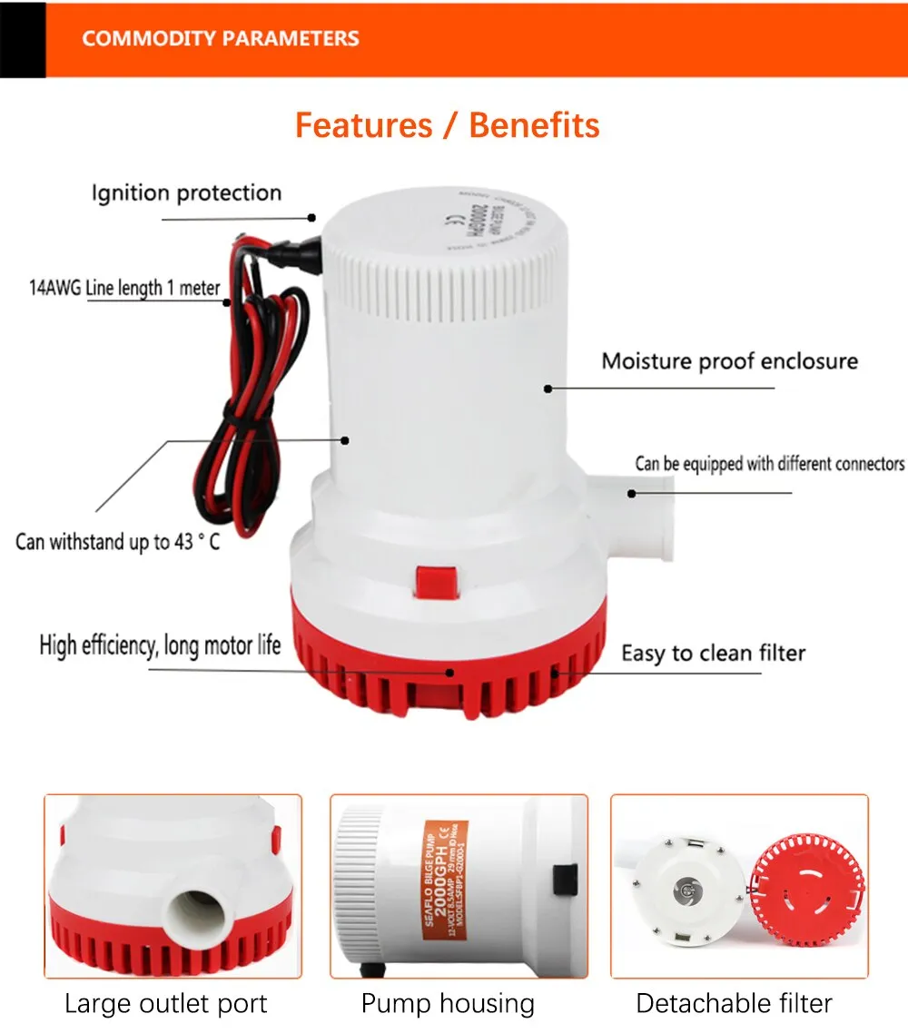 other ships to remove bilge water in time. It is usually submerged in water. Usually 12V or 24V DC power supply, marine batteries and other