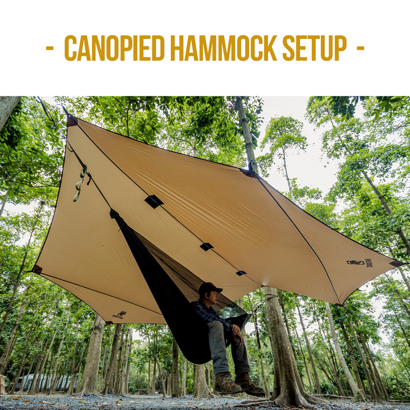 - Provides a shaded area for cooking, relaxing, or socializing.
