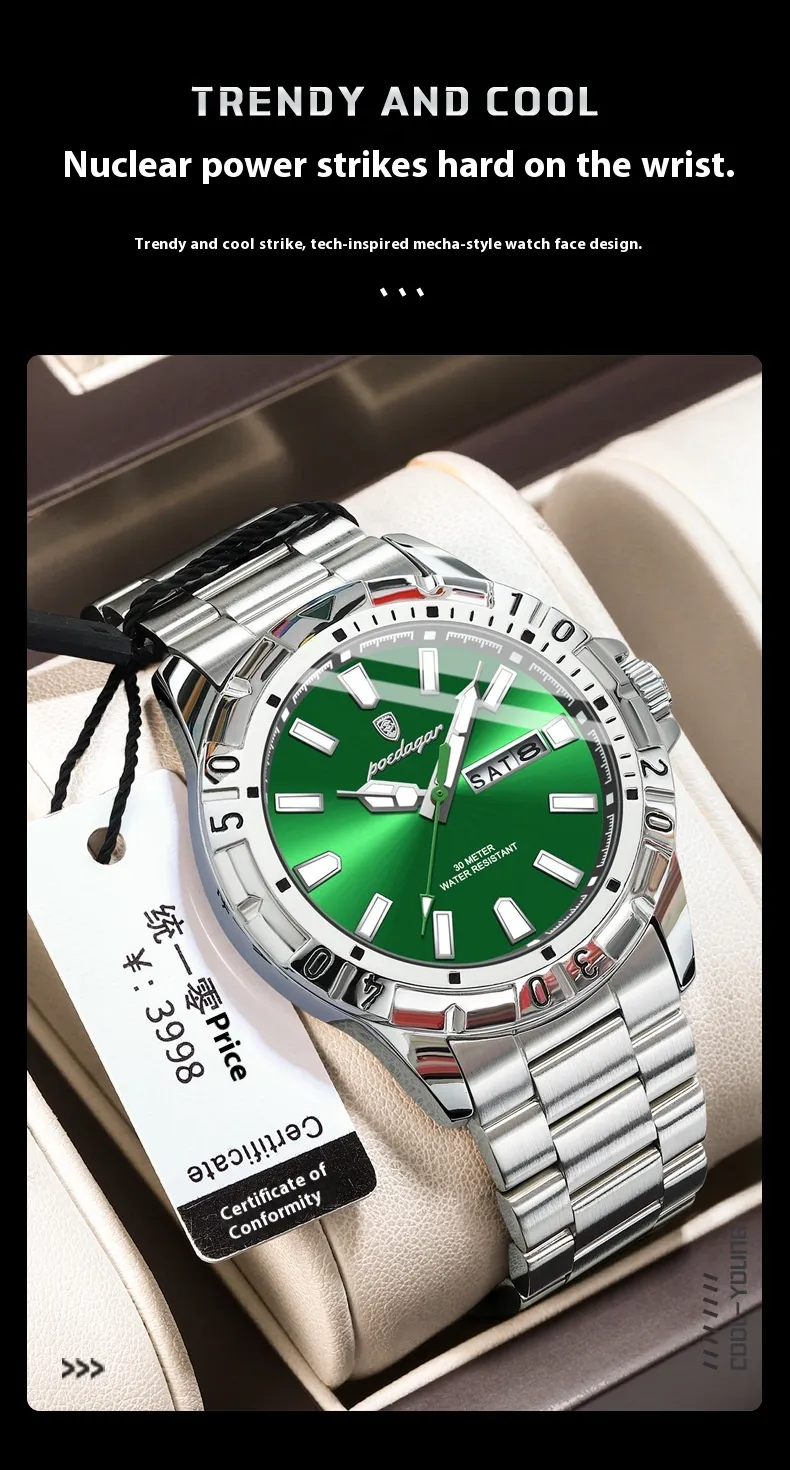 Whether you need a watch that works in professional settings, during outdoor activities, or for evening events, this watch delivers both style and practicality. Its luminous dial ensures easy time reading in any condition, while the waterproof and scratch-resistant features guarantee longevity. This watch is designed for men who value quality, performance, and timeless style.
